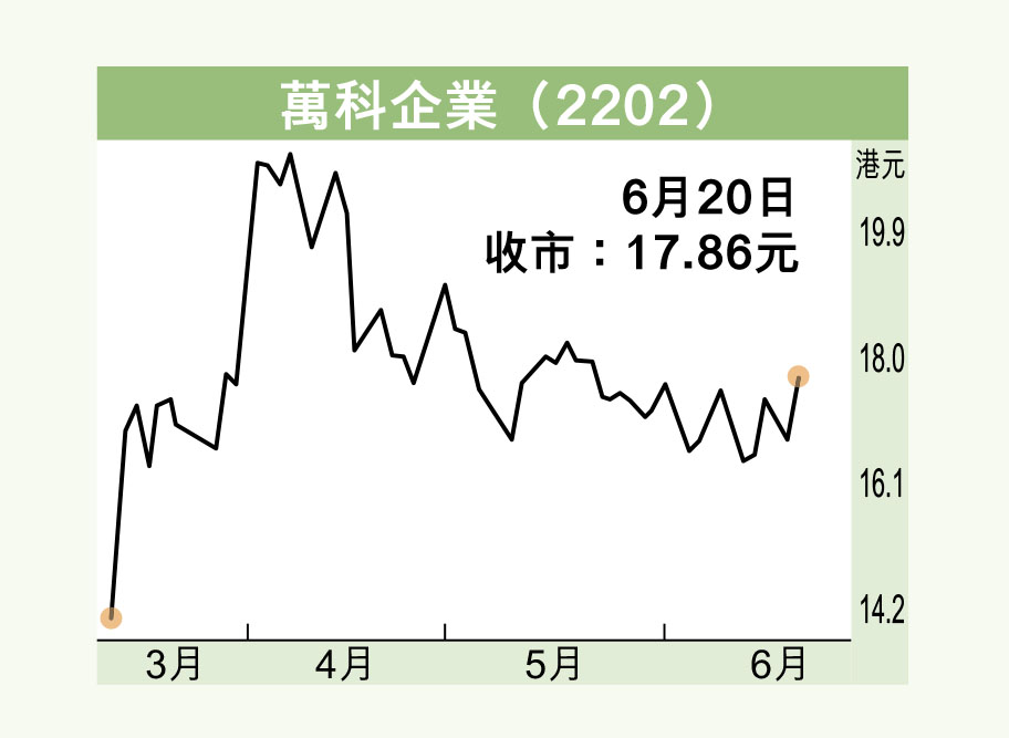 另一方面,萬科繼上月三度回購A股後,觀乎其6月回購力度明顯加大,截至6月17日的12個交易內,公司每天均見在市場回購,最近一次回購是上周五(17日),在市場回購555萬股,涉資1億多元。萬科頻頻回購,除了反映公司手頭資金充裕外,也反映股價仍然偏低已引起管理層關注,亦是對業務前景抱有信心的表現。