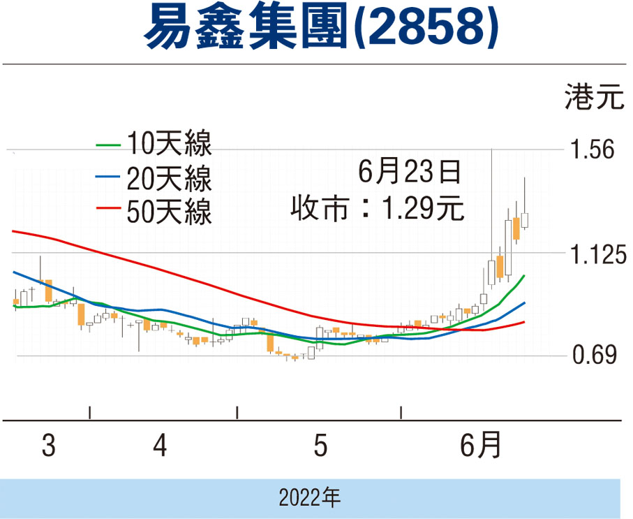 國務院常務會議確定加大汽車消費支持的政策,活躍二手車市場,促進汽車更新消費,令相關板塊近期的炒味有逐步升溫勢頭。易鑫集團(2858)於內地汽車市場提供貸款促成服務的交易平台,並自營融資業務。汽車板塊近日成為市場熱炒對象,該股也見反覆走高,昨進一步升至1.29元(港元,下同)報收,升0.11元或9.32%,續持穩於多條重要平均線上,平均線組合排列亦呈強。由於集團主營業務穩增,在市場的募資反應亦理想,在股價走勢強勢已成下,可考慮伺機跟進。