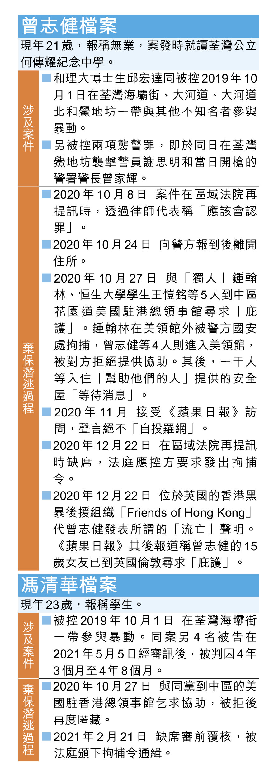 4名涉2019年黑暴案青少年被告,棄保潛逃近兩年落網。警方國安處接手調查,揭發有海外援暴的「港獨」組織設下的「助逃斂財」大騙局,由到駐港美領館乞求「庇護」失敗,繼而租用「安全屋」窩藏4人,同時搞眾籌自肥,呃盡捐款就將4人當「棄卒」,今年3月開始更斷供食物,最後要4人繳交近50萬元偷渡台灣費用,誘騙他們前日到西貢「上船」,同時匿名向警方舉報4人行蹤,讓他們自投羅網。4人經歷在「黑房」誠惶誠恐生活近兩年,最終仍難逃法網。