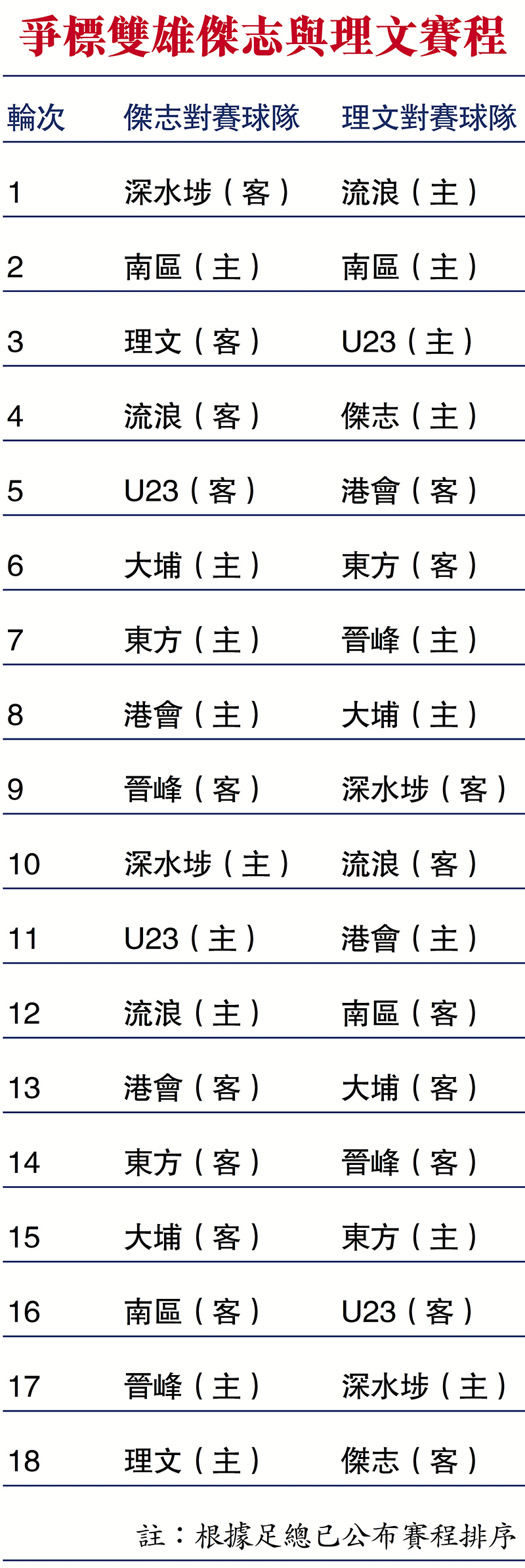 港超賽程公布 兩循環決出冠軍盟主 理文煞科日硬撼傑志