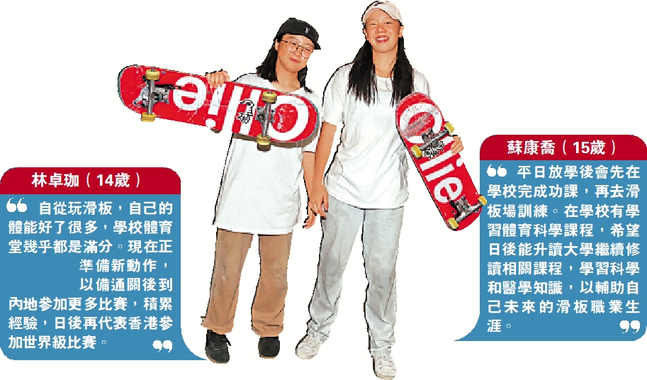 「玩滑板嘅都係唔讀書嘅人」、「飲酒、食煙」、「都係社會不良青年」……接觸滑板運動近兩年的林卓珈今年14歲,她回憶起初玩滑板的時候,曾聽到各種褒貶不一的聲音;15歲的蘇康喬亦有同樣的遭遇,但她們異口同聲表示:「滑板是一個非常正面的運動!」