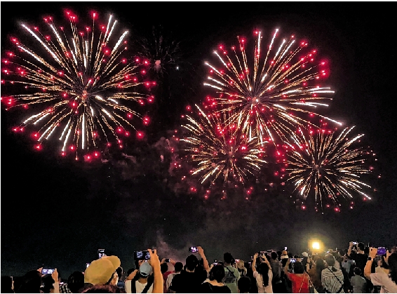新北市淡水漁人碼頭煙火秀9日晚間8時登場,現場同時湧入超過3萬人觀看,散場時輕軌排隊人潮一度綿延超過200米。此次煙火秀配合中秋節,施放全台首見的月亮造型及愛心造型煙火,現場民眾驚嘆連連,民眾紛紛拿出手機搶拍留念。\中通社