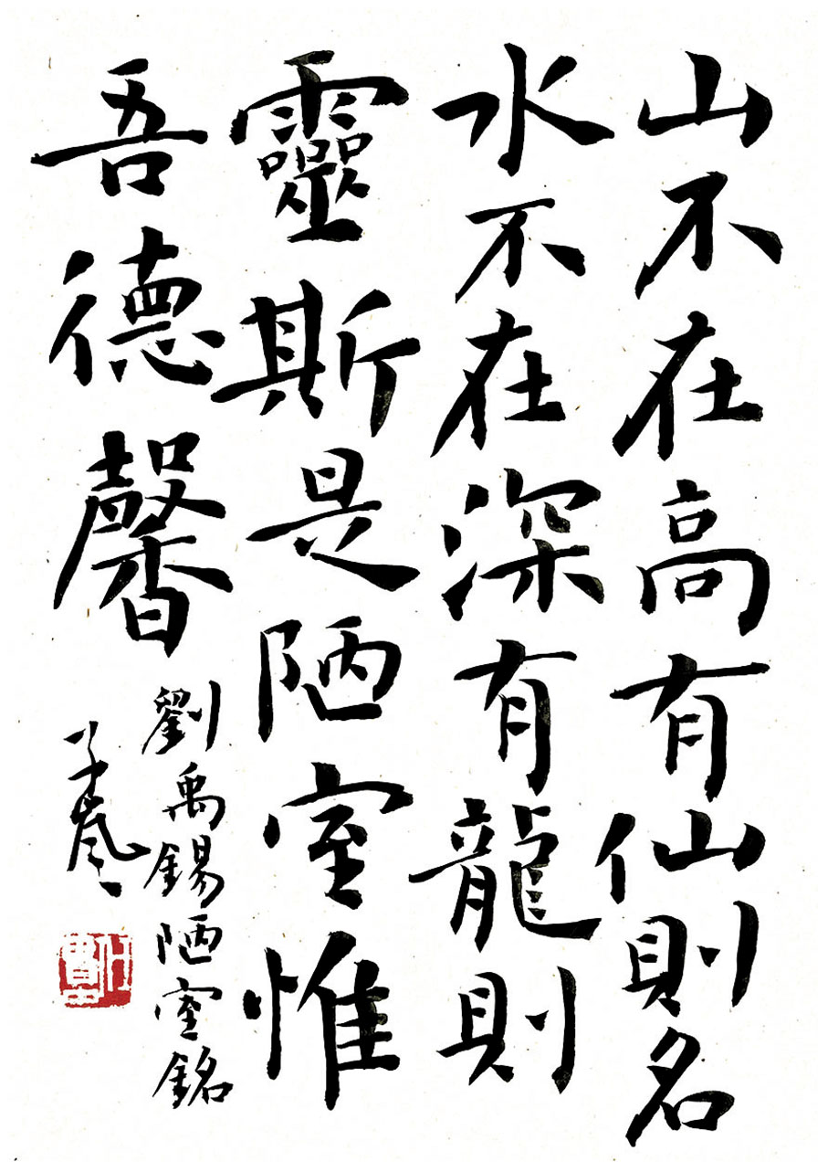 山不在高,有仙則名。水不在深,有龍則靈。斯是陋室,惟吾德馨。苔痕上階綠,草色入簾青。談笑有鴻儒,往來無白丁。可以調素琴,閱金經。無絲竹之亂耳,無案牘之勞形。南陽諸葛廬,西蜀子雲亭。孔子云︰「何陋之有?」 ◆劉禹錫
