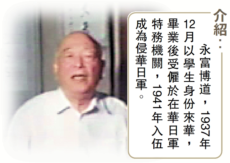 1992年,我77歲了。在戶籍上的姓名是永富博道。我在中國則叫博之。在我初中時代,天皇制軍國主義教育正在流行,所有日本人都奉天皇之命為侵華效勞,侵略戰爭被稱為聖戰。我們所受的教育是把昭和天皇看作不僅是日本的,而且也是全世界的活神。