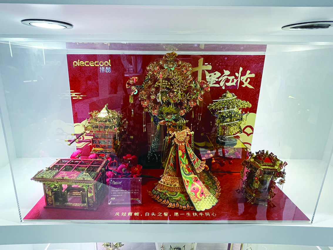 嫁衣、鳳冠、宮燈、花轎、婚床,精美的金屬拼裝模玩呈現了中國傳統婚嫁過程中的重要器件,在一眾文創產品中格外顯眼。