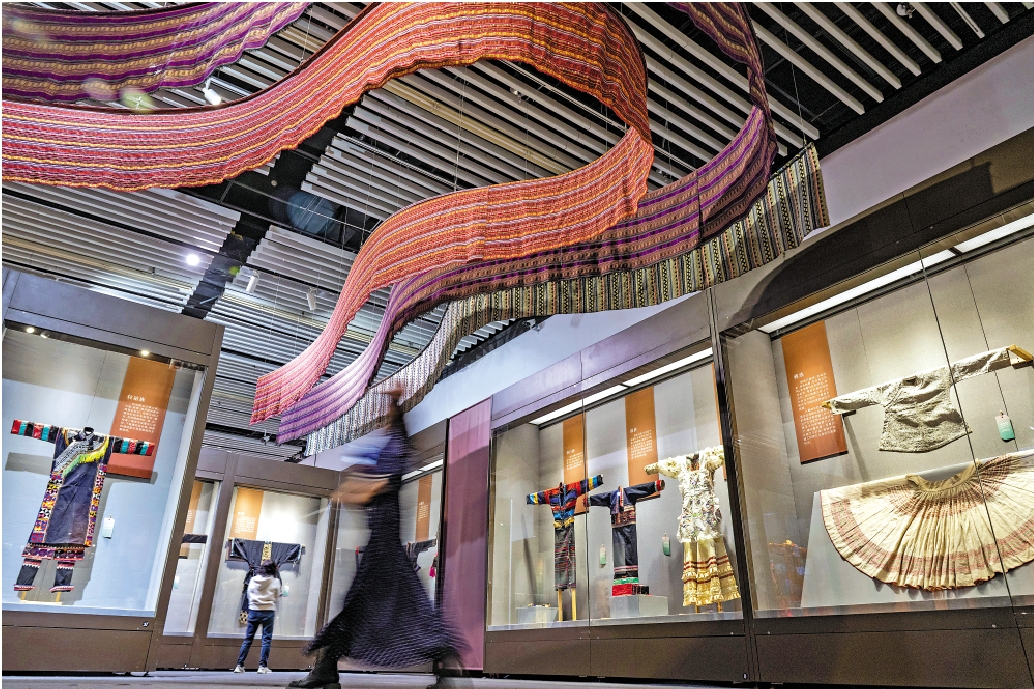 今天是「三·八」國際勞動婦女節,中國園林博物館特別推出「彩衣─中國女性民族服飾」展覽。現場展出一百八十件(套)展品,主要選取別具地域特色的三十三個民族的傳統女性服飾,以「衣香」「納福」「煥彩」三個部分,展示女性民族服飾的獨特藝術魅力與文化價值。