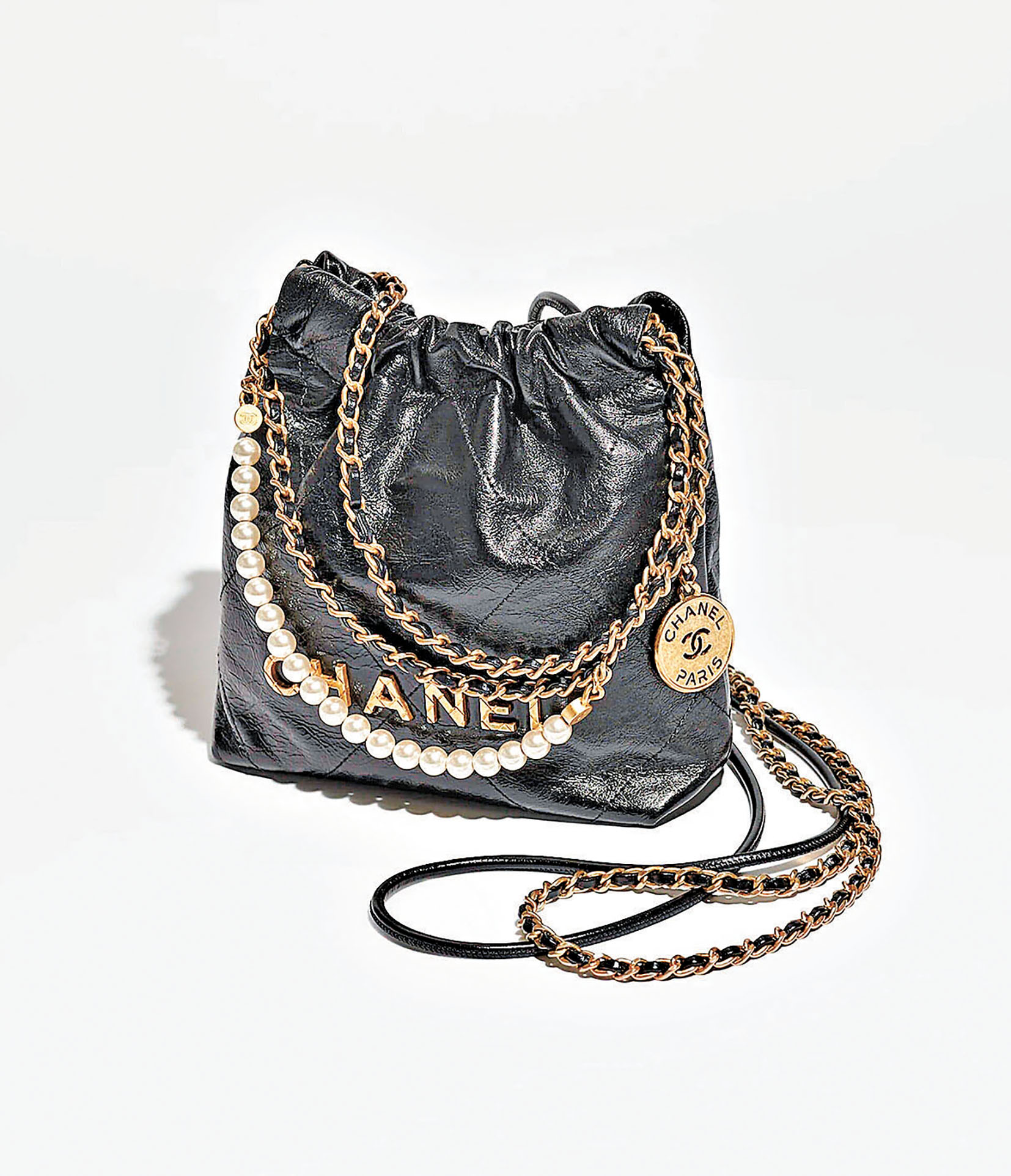 CHANEL 22 Mini Bag共推出了四款,分別是淺黃色、黃銅色以及兩款經典黑色,手袋採用光面帶皺紋的小牛皮,配上放大的菱格紋縫線,簡單率性。兩款黑色CHANEL 22 Mini Bag,其中一款加上了珍珠鏈,整體更加華麗亮眼。在CHANEL近期進行了今年第一次加價後,CHANEL 22 Mini Bag在香港定價為40,000元,而另一款配有珍珠鏈的黑色CHANEL 22 Mini Bag是42,500元。