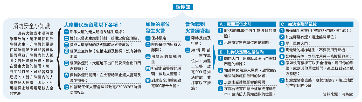 6 假如沒有樓梯可以安全通過,返回你的單位,或到其他單位拍門,直至找到安全地方躲避;
