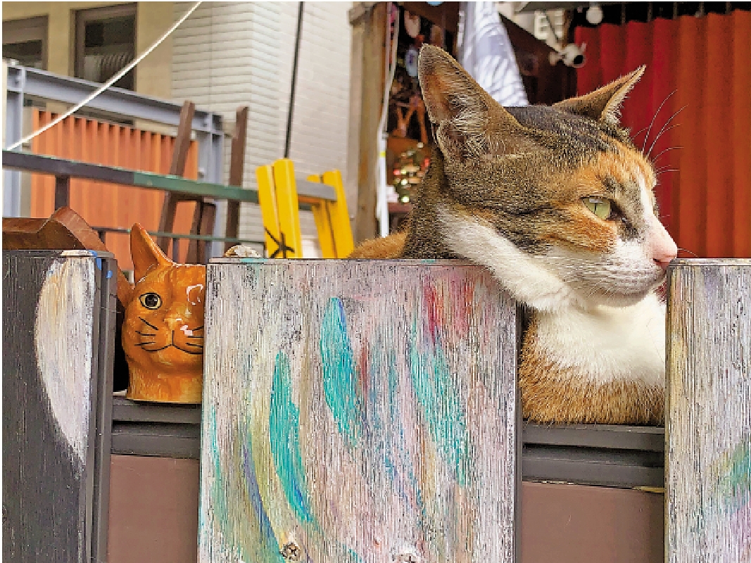 大澳是古老漁村,現在已成為市民和遊客的休閒好去處。那裏也是小貓的天堂,不管是家貓還是流浪貓,都得到居民的愛護,生活悠然自得。這天,一隻貓咪懶洋洋地把頭枕在老屋圍牆的畫框上,而牠身旁的小貓雕像,則瞪着大眼,怒目而視,相映成趣。\圖、文:月石