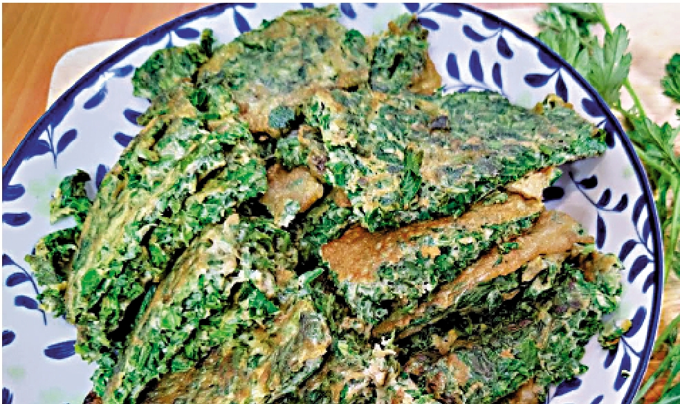 材料:新鮮艾草100克、雞蛋4隻,麻油、鹽各適量。