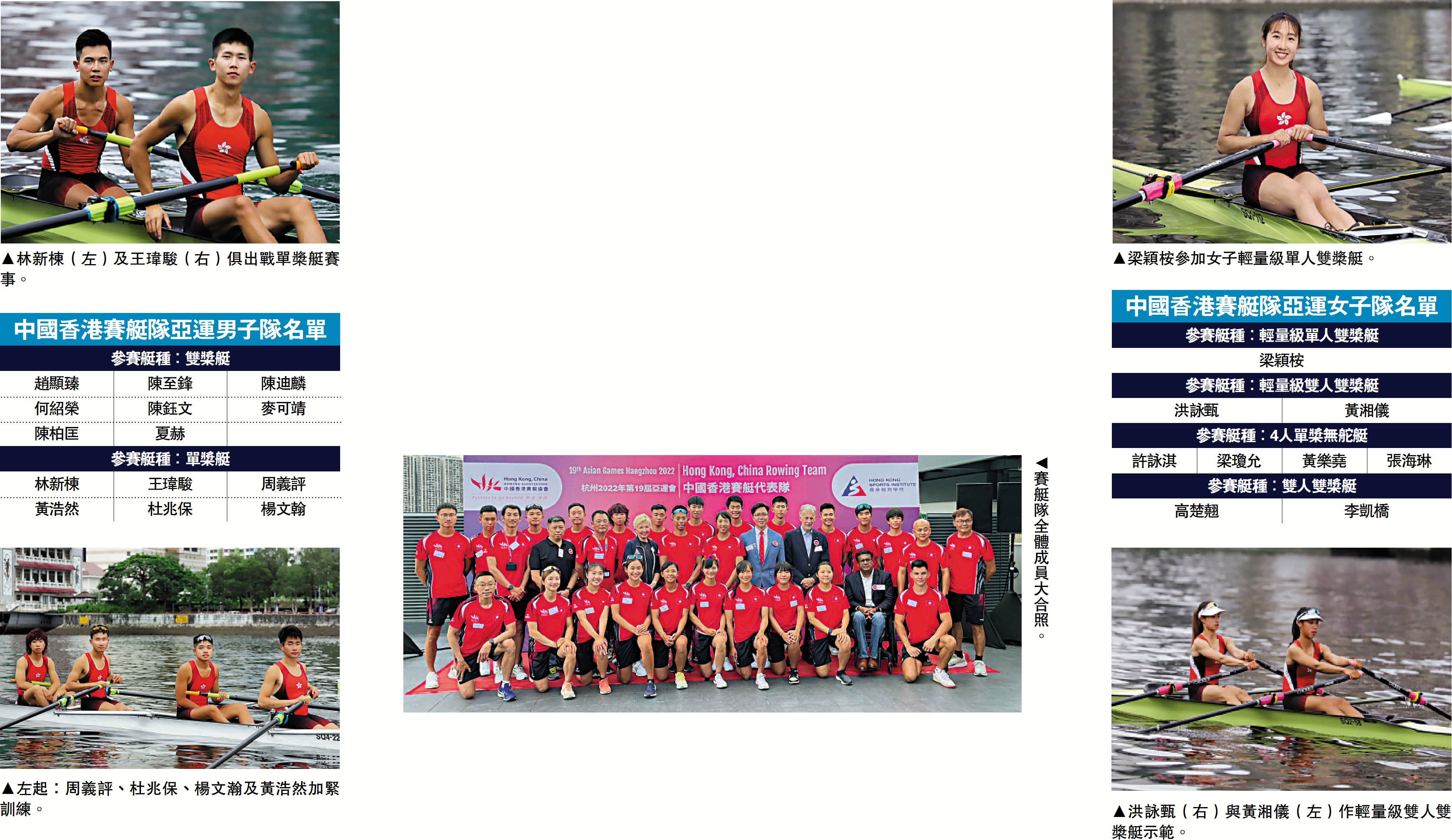 除了趙顯臻、洪詠甄/黃湘儀之外,男子組陳至鋒/陳迪麟的雙人雙槳艇、林新棟/王瑋駿的雙人單槳艇和梁穎桉的女子輕量級單人雙槳艇一樣有力爭牌。