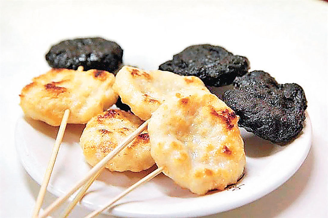 店主以新鮮材料製造一黑一白的手工墨魚餅,有不少墨魚肉粒在餅中,食客可以吃到一粒一粒的墨魚粒。黑色的墨魚餅加了墨魚汁做成,而白色的則純粹以墨魚肉製作,更加濃味。即叫即做的墨魚餅外脆內軟,彈牙鮮味。