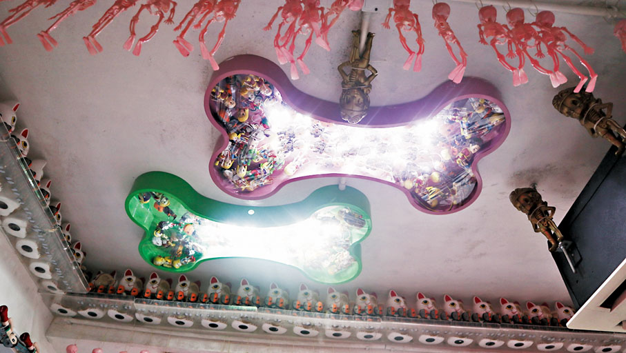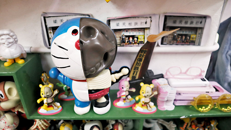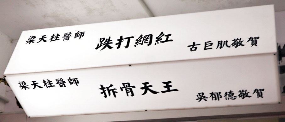 當有人提及跌打館,你會聯想到什麼?是濃郁撲鼻的中藥味、鏡子上面的書法、牆上面的中國畫,還是一個頗大年紀的中醫師?在長沙灣青山道283號,有一間別樹一格、可以打卡的「主題跌打醫館」,曾獲得「拆骨天王」、「跌打網紅」、「良心醫師」及「針灸天王」的梁天柱醫師是一位年輕新潮的醫師,十多年來不斷在醫館搞一些新氣象,四處收羅和自製一些公仔飾品。由門外一條比人高的大脊椎、可以轉動的骨頭價格牌,以至櫃上不計其數的骷髏公仔,可謂玩味處處。這間與眾不同的跌打醫館有着粉紅色的大門、按摩器、粉色的LED霓虹燈、四周卡通公仔,如海綿寶寶、半骷髏半Mario、半骷髏半米奇老鼠的卡通等。