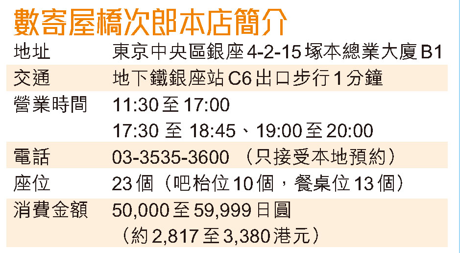 據統計,東京一共有191家米芝蓮星級食肆;然而,今次向大家介紹的食肆,名氣比這些米芝蓮推介更加響,這間食肆就是由「壽司之神」小野二郎(Jiro Ono)創辦的數寄屋橋次郎本店(Sukiyabashi Jiro)。數寄屋橋次郎本店最巴閉之處,就是食客相當多,出名難訂枱,更於2020年時因不接受網上訂枱和街客關係,終被米芝蓮搣星。雖然如此,仍然有眾多當地人或遊客願意提早訂枱,一嘗「壽司之神」炮製的佳餚。