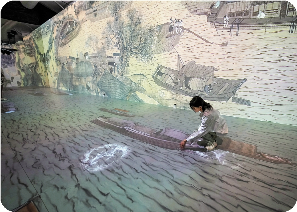「畫遊清明上河──故宮沉浸藝術展」正在重慶禮嘉智慧公園舉行。該展覽綜合利用現代數字技術,通過全息投影、裸眼3D、8K超高清數字互動等科技手段呈現《清明上河圖》中的宋代城市生活,讓參觀者可以身臨其境般感受宋朝生活美學和中國傳統文化。