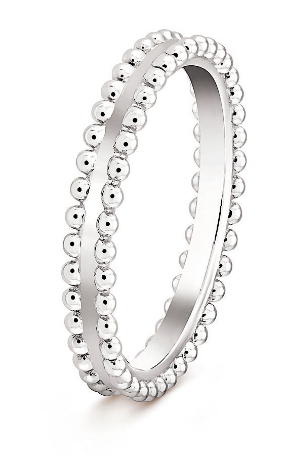 品牌以同名系列向其始創人及第一位女性人物Estelle Arpels致敬。這款與Estelle單顆寶石戒指相配搭的戒指,以精美的鉑金圓珠鑲邊,凸顯拋光金屬的亮澤。結婚戒指由17,400元起。價格最親民的Toujours婚戒則由8,550元一隻起。