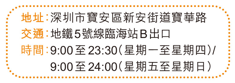 首先可以逛下鐘書閣,嘆冷氣的同時還可以在巨型螺旋書架旁盡情拍照打卡。之後可以來到東岸商業區食下午茶,一次過試遍南北方的特色食物,從清湯牛腩到煎餅果子,再從炭燒生蠔到北京烤鴨,種類繁多,口味多樣,更有來自東南亞和歐洲的美食。食完之後可以登上巨大的灣區之光摩天輪,360度俯瞰深圳的美麗景色。在下午時分更可以欣賞到波光粼粼的海面,盡情享受壯麗的海景。日落時分可以同朋友一齊在東岸海濱棧道散步,欣賞落日和深圳的城市美景,在海邊與摩天輪合影打卡。晚上慶典廣場更有噴泉與水秀表演,還可以行下創意市集,給朋友帶回別樣的紀念品。