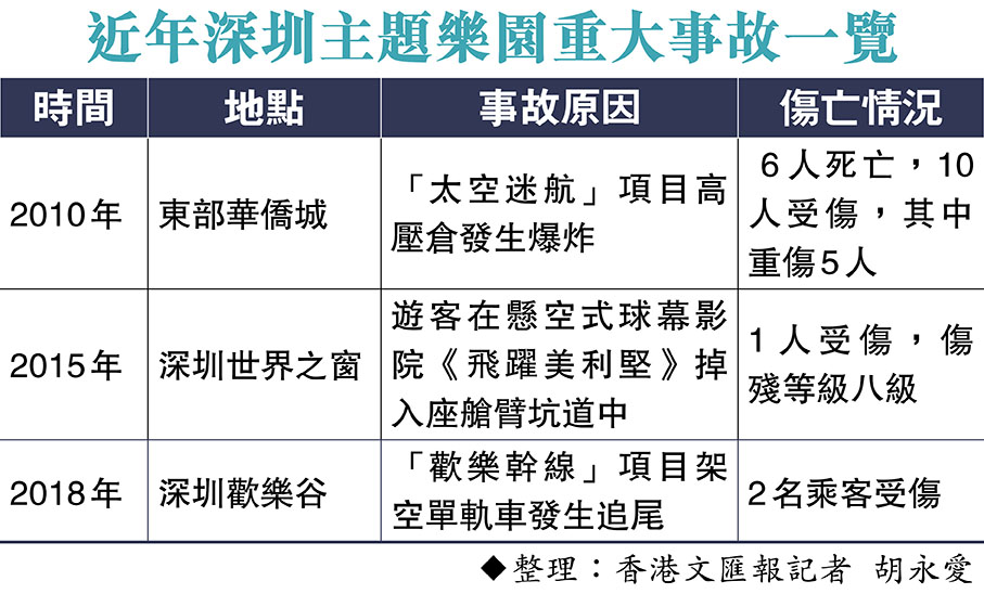 香港文匯報訊(記者 胡永愛、郭若溪 深圳報道)10月27日晚6點半左右,深圳歡樂谷景區過山車「雪域雄鷹」項目發生車輛碰撞,造成8人受傷。目前,景區於10月28日至29日周末閉園兩天、暫停營業。深圳歡樂谷發布情況通告稱傷者「已送往醫院治療,情況平穩,均無生命危險」。