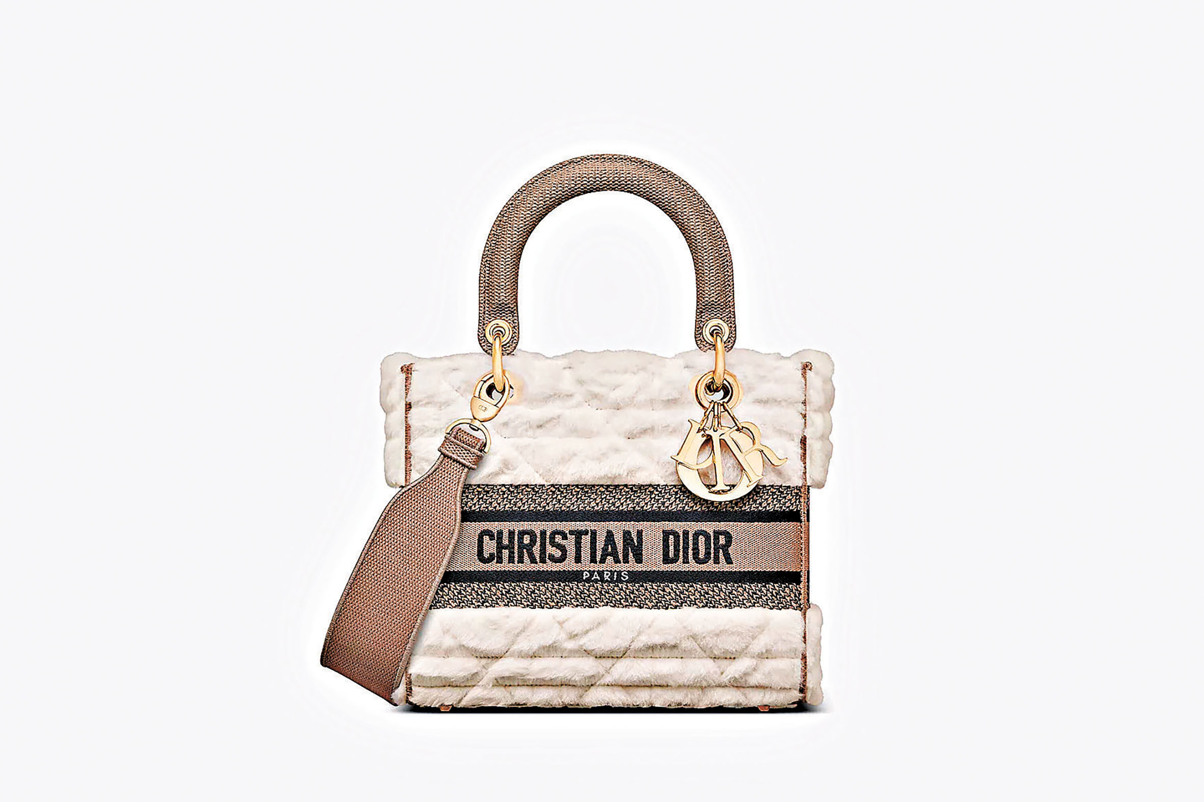 DIOR的LADY D-LITE手袋向來深受女生歡迎,這款採用了奶白色羊毛皮展現出Cannage藤格紋圖案,配合正面的「CHRISTIAN DIOR PARIS」標誌加以綴飾,完美融合時尚感與品牌標誌。
