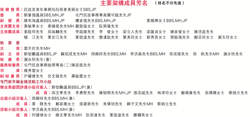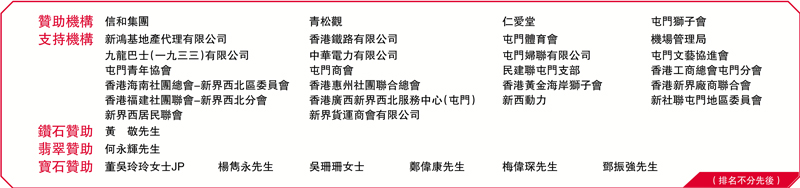 ◆屯門新市鎮金禧酒會暨頒獎典禮是由屯門各界慶祝屯門新巿鎮金禧活動籌備委員會、屯門各界協會、屯門民政事務處合辦及民政事務總署贊助。