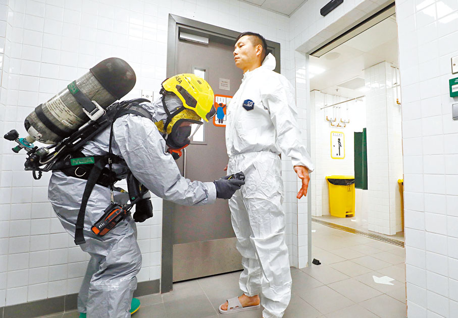 消防處日前向傳媒介紹機場北面跑道新增的固定洗消設施,及機場消防隊未來的發展計劃。危害物質事故支援隊署理助理消防區長林國鴻表示,之所以在機場禁區內設立固定洗消設施,是為了防範以後在禁區內或在航機上發生化學、生物、輻射或核事故,「在2021年3月時,日本福島發生核事故,有幾位從福島回來的記者當時身體出現不舒服,所以那時候我們就設立臨時設備,為他們進行沖洗。雖然這類事故發生的幾率很低,但消防處亦要居安思危,為了以後能更好應對此類事情,故新增此設施。」
