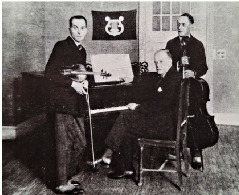 查哈羅夫為前聖彼得堡音樂學院鋼琴教授,與普羅哥菲夫等音樂大師同窗。他的夫人漢森(Cecilia Hansen)乃傳奇小提琴教授奧爾(Leopold Auer)的幾位女學生之一,與海費茲同班。上世紀二十年代與丈夫作全球巡演,也是當時著名的夫妻檔。據資料顯示,二人後來因音樂事業不同取向而分手。查哈羅夫厭倦巡演伴奏角色,一九二九年在東京演出後分道揚鑣。正是那年他接受蕭友梅邀請,前往上海擔任首位鋼琴組主任。同期成立的小提琴組,主任為上海工部局首席富亞(Arrigo Foa)。他們二人與大提琴組主任佘甫磋夫(Igor Shevtzoff)組成鋼琴三重奏(見附圖),教學之餘在上海演出。