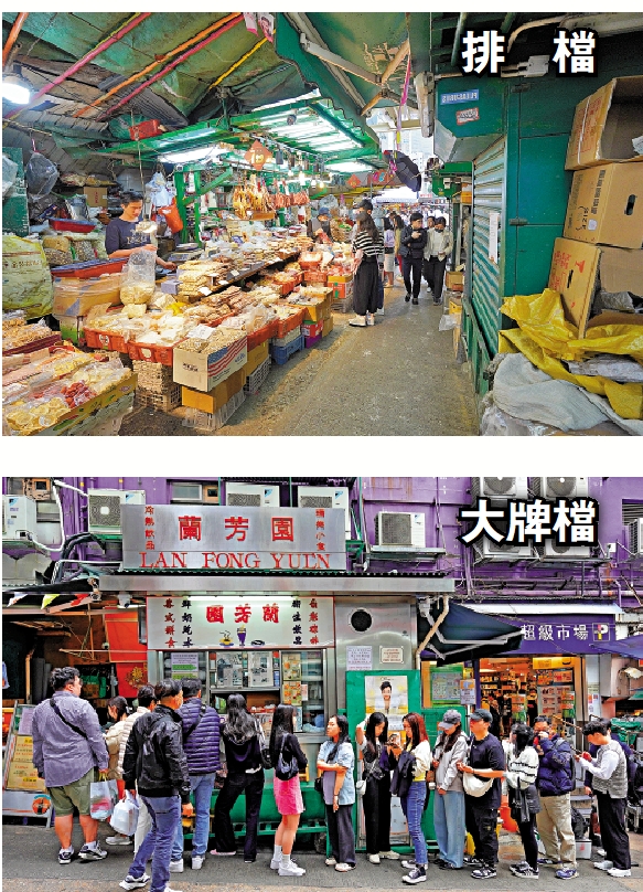 至於士丹利街和吉士笠街一帶的大牌檔,已是城市裏的舊情懷。那到底是「大排檔」還是「大牌檔」?有說1921年首批持牌大牌檔在街頭營運,由於當年政府將小販牌照分為攤販和流動小販,便出現「大牌」和「小牌」。也有說1950年代大牌檔為熟食小販,大牌檔牌照的面積比一般賣生果蔬菜小販的牌照面積大,內容包括檔口的相片、持牌人姓名、所在位置等,牌照必須掛在當眼位置,所以稱為「大牌檔」。