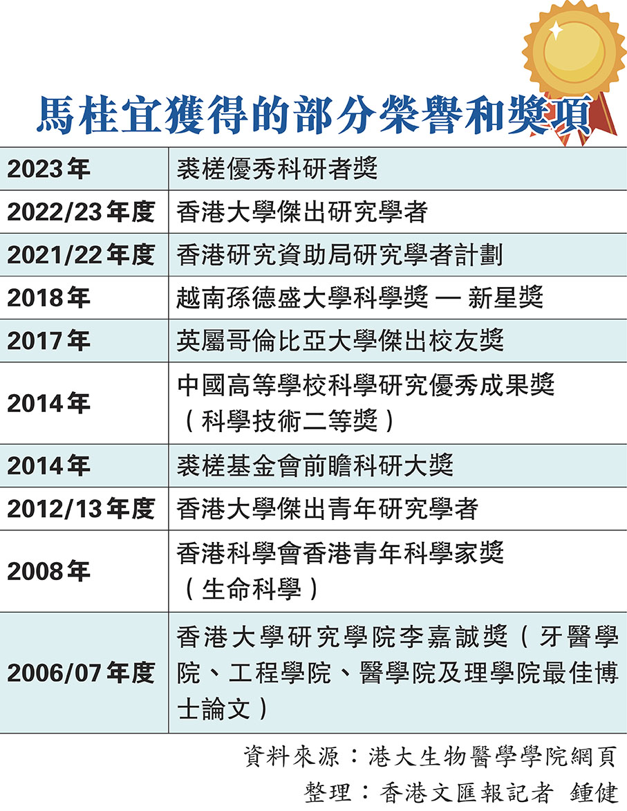 馬桂宜的科研之路一開始並不是那麼清晰。她在接受香港文匯報訪問時笑言,自己「由細到大都不知自己想做什麽」,即使大學選了理科,心態上也只是嘗試和探索,例如試過配藥,中醫又研究一下,最終在大三時到一家研究癌症的實驗室實習,「發現工作都幾得意,好像在玩遊戲,可以自己規劃想做的實驗。」於是,她繼續讀上去,先後在加拿大英屬哥倫比亞大學完成學士和碩士學位,及後在港大獲得博士學位。
