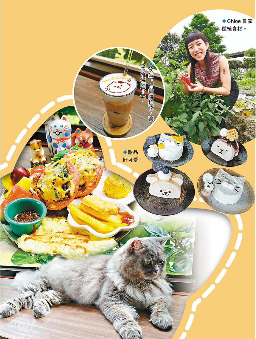 而且,在店外亦有個種植小農場,不少食材可以自給自足,Chloe還將時令的食材入饌,她每天早上會到市場選購最新鮮的食材,炮製不同的美食,其中有些貓造型的食物,擺盤可愛又滋味,真心每款食物都很美味,實在令人按捺不住,在這裏待了半天也不覺,真是快樂不知時日過。據Chloe表示,這些貓都是貓店送來的名種貓,這裏的名種貓真是好純品、好聽話,很愛和客人打成一片,好治癒,看着牠們真是好開心。