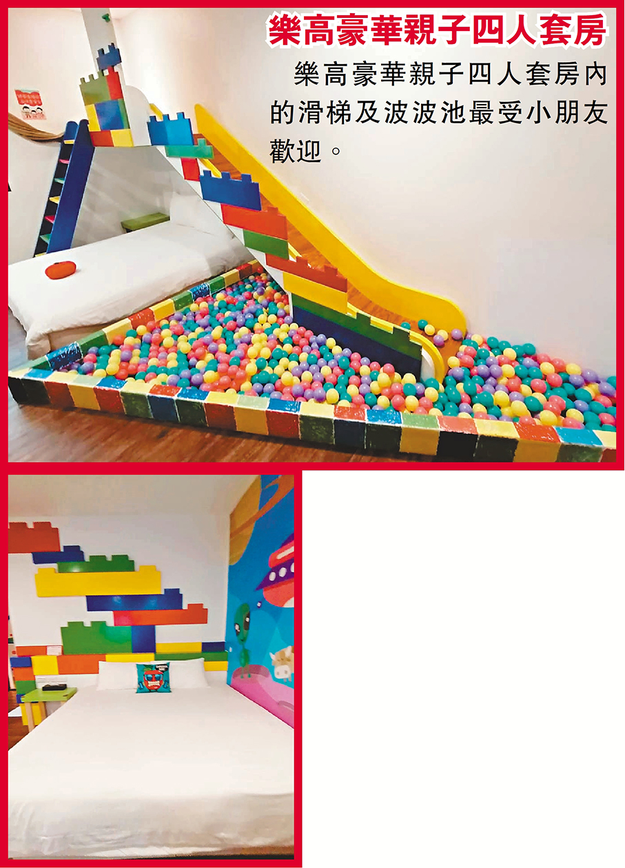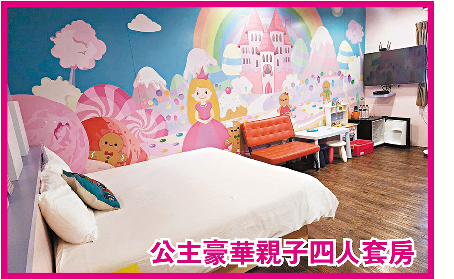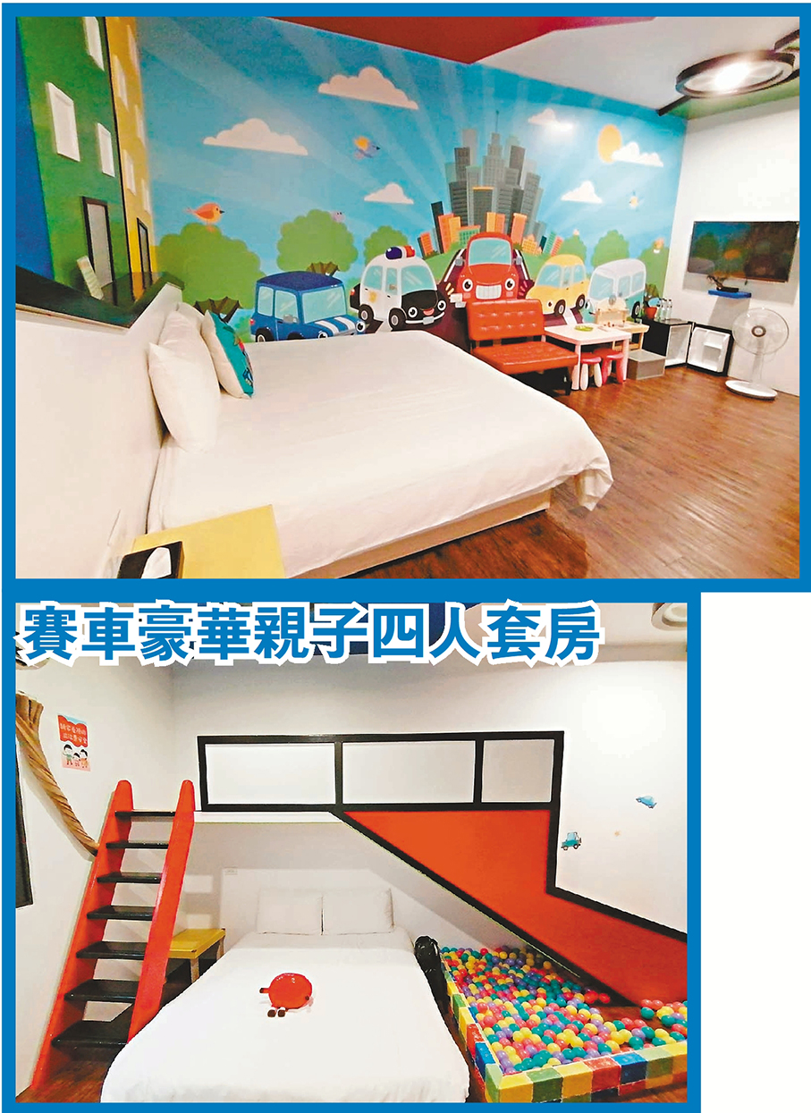 民宿室內格局打造出舒適安全寬敞的空間設計,以及輕鬆、年輕的趣味裝潢,更貼近大家嚮往放鬆的自由心,同時針對兒童遊樂部分,就在房間內貼心設置了小朋友最喜愛的溜滑梯。二館外面有沙坑、溜滑梯,安全的空間不僅大人放心,小孩也玩得開心,這兒是大家暫歇之地。這裏的房間寛敞舒適,二館共有五種親子房型,當中的豪華親子四人套房有四個主題,包括了賽車、樂高、樂園、公主房,各房間均有波波池、溜滑梯、廚房組合玩具及零食,有兩張雙人大床,足以可瞓足四人。