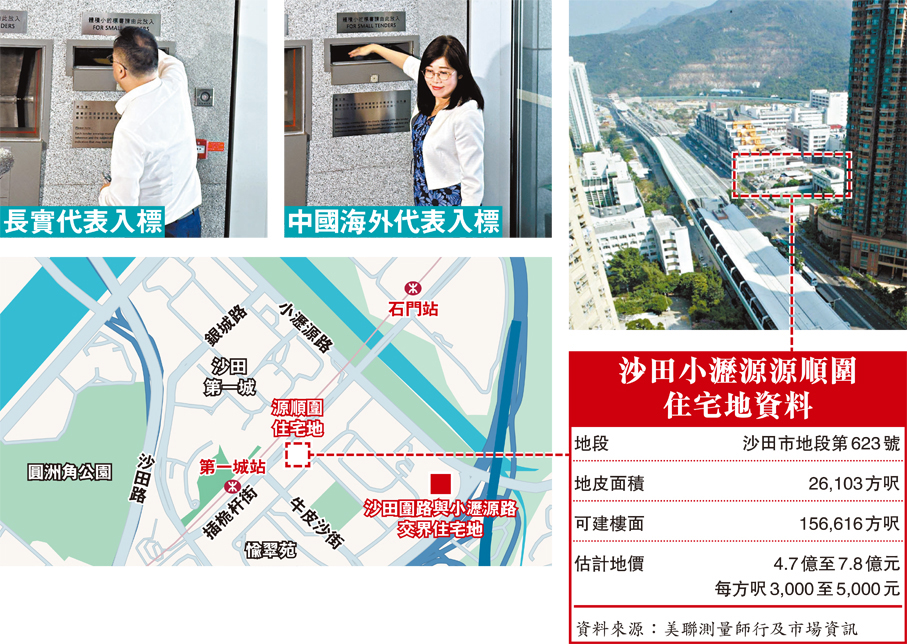 地政總署公布,沙田小瀝源住宅地共截收11份標書,包括鷹君、中信泰富、長實、信置、中國海外、招商局置地等。其中,信置表示今次屬獨資競投。
