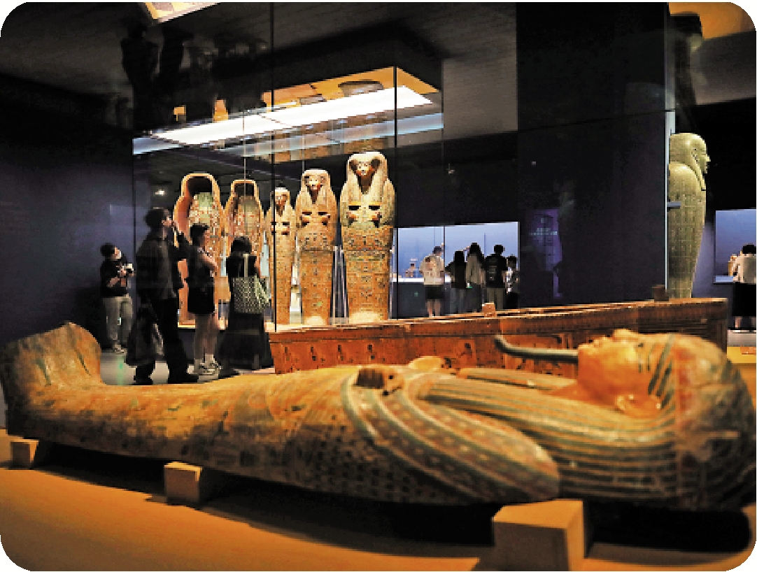 「金字塔之巔:古埃及文明大展」正在上海博物館人民廣場館舉行。展覽分為「法老的國度」「薩卡拉的秘密」「圖坦卡蒙的時代」三個版塊,匯集七百八十八件古埃及不同時期的珍貴文物,其中多數文物是首次來到亞洲。\中新社