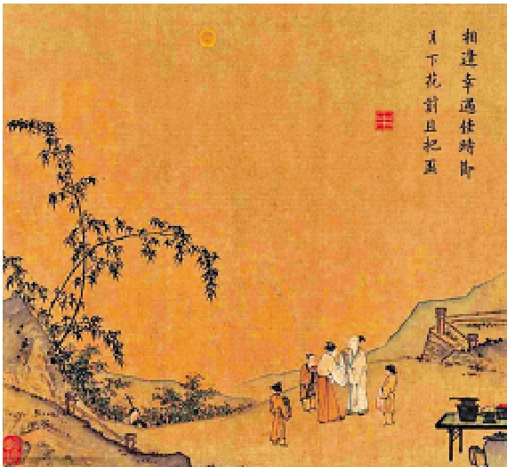 《月下把杯圖》(附圖,局部)以清麗淡雅的設色和生動的自然勾勒,展現了豐盈的意境,深深觸動了觀者的心靈。此畫由南宋著名畫家馬遠繪製,他是「南宋畫壇四大家」之一,與李唐、劉松年和夏圭齊名。馬遠的藝術風格以小中見大而著稱,他善於通過一角或半邊的景物表達出廣闊的空間,因此被稱為「馬一角」。