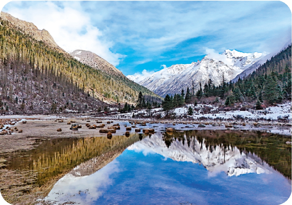 秋冬之交,四川省甘孜藏族自治州德格縣境內的多瀑溝景區迎來一場降雪。旭日初升,日照金山。山巔雲霧裊繞,河谷淺溪淙淙,藏房灌木掩映,勾勒出一幅美麗的生態畫卷。這裏珍稀動植物種類繁多,優美的原始森林為眾多野生動物提供了自由棲息的家園。\新華社