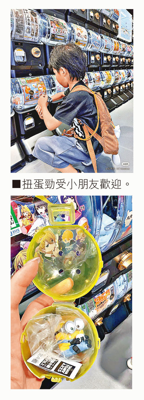 扭扭城設有約1,400部扭蛋機,由熱門款式到各種枱頭小廢物都一應俱全,滿足你對扭蛋的任何追求。有網民粗略估計,場內有超過80款人氣動漫角色扭蛋,除了有近期最熱門的Chiikawa外,還有鬼滅之刃、高達、Minions等,也有不少港人童年經典動畫,如亂馬1/2、小丸子、多啦A夢、Hello Kitty等。當中更有些是小眾而有趣的扭蛋款式,例如植物、文具、動物、昆蟲、按摩槍等!價格則由人民幣15元至35元不等,真係扭極都唔肉痛。更重要的是,店內也有售賣其他人氣動漫的周邊產品,絕對滿足各位動漫和扭蛋迷!