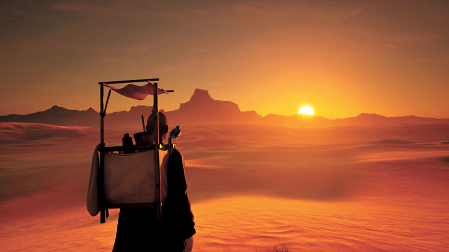 飛天神女、巨龍盤旋,大漠黃沙、駝鈴聲響。佩戴上一副VR眼鏡,便即刻「穿越」進入敦煌的世界,從高空飛行穿過沙漠及玉門關,走入莫高窟洞窟身臨其境觀賞壁畫,耳邊響起流傳千載的傳奇故事……30分鐘的視聽體驗,讓每一個來到該展的觀眾意猶未盡。這是位於深圳龍華的深圳美術館(新館)展出的《敦煌:千色之域》XR全景奇幻LBE(Location Based Entertainment大空間互動展覽)體驗展。