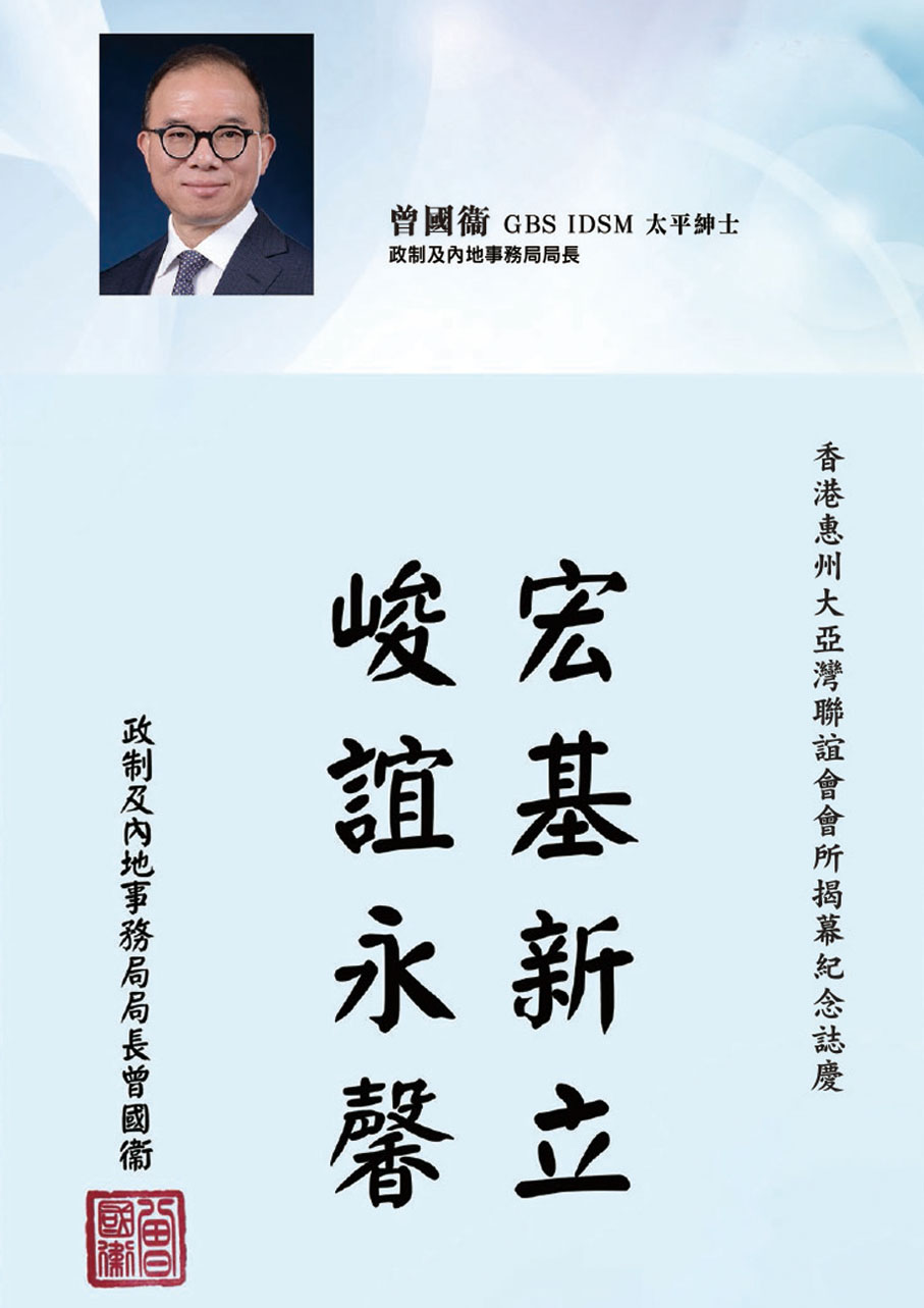 今日,本會會所正式啟用,日後定會以更好的面貌凝聚優才,為更多大亞灣籍鄉賢提供聯誼平台,共同推動會務發展;同時,也希望繼續得到各位支持,繼續弘揚愛國、愛港、愛鄉精神。