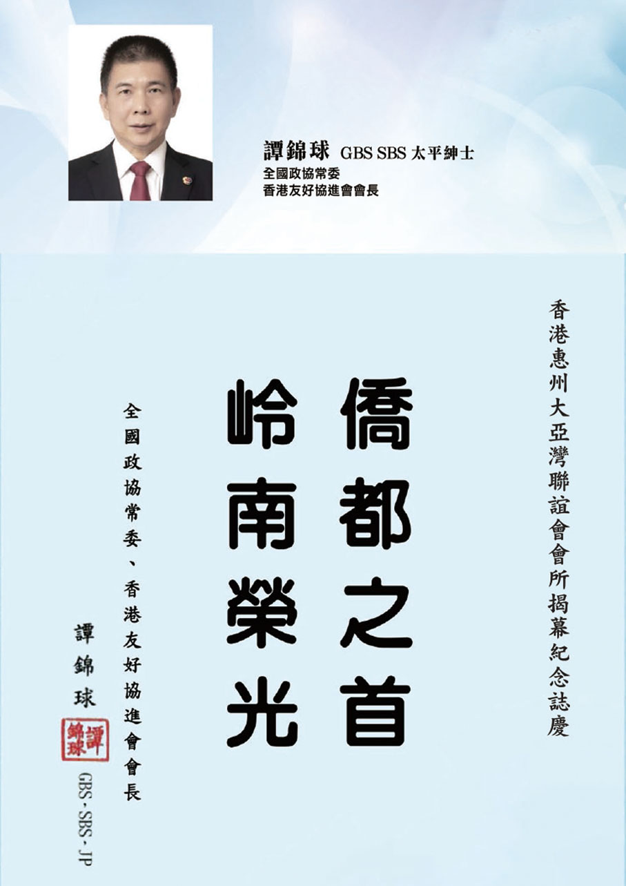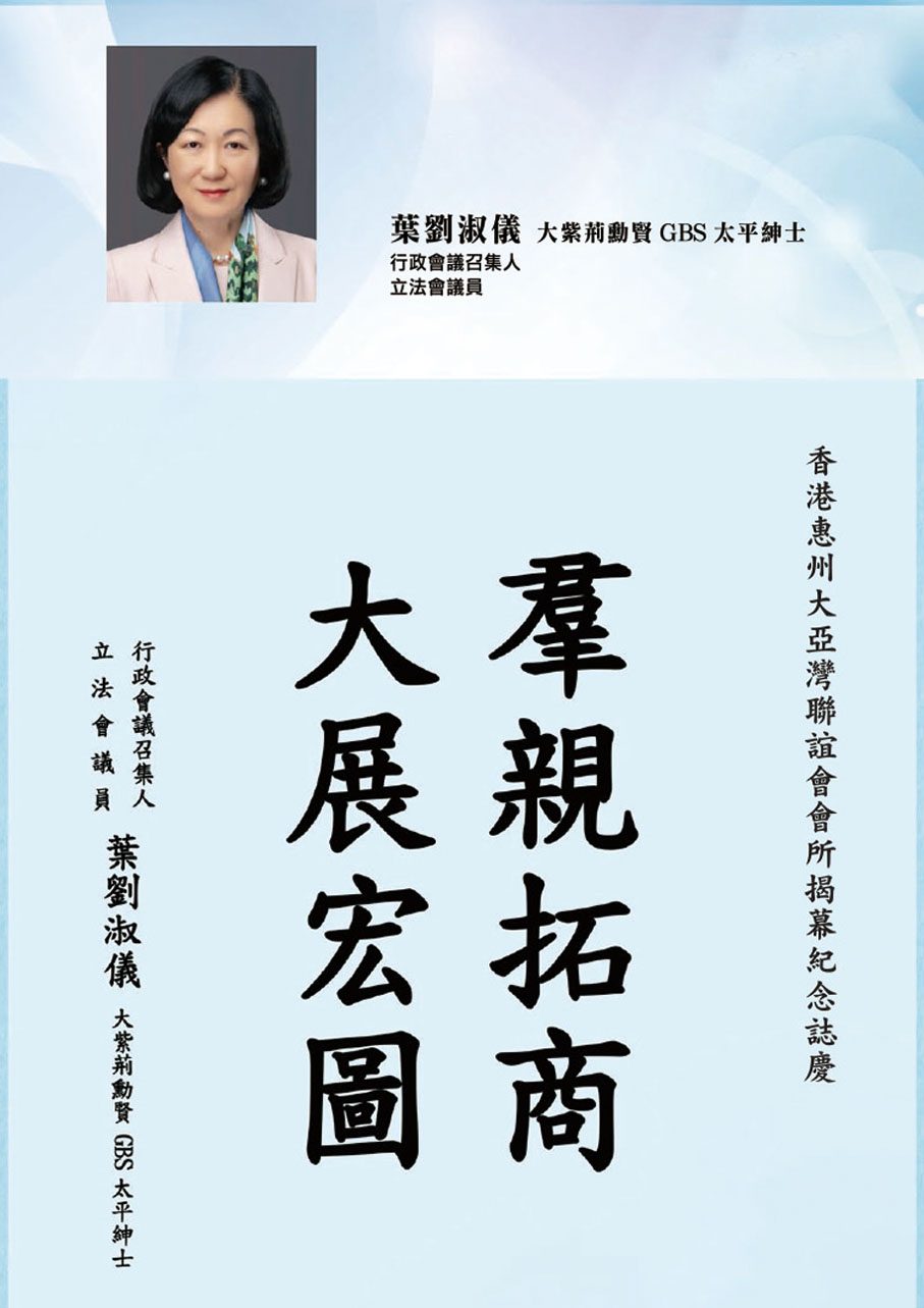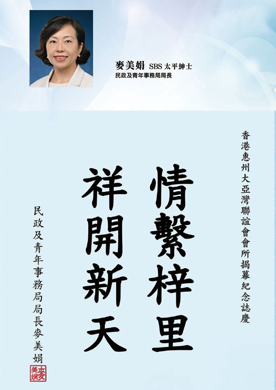 展望未來,我們繼續秉承「聯絡鄉誼」的宗旨,凝心聚力,發揚愛國愛港愛鄉精神,支持特區政府依法施政,促進香港與大亞灣在經濟、商貿、文化、教育等方面的合作交流,創造更大的社會價值。