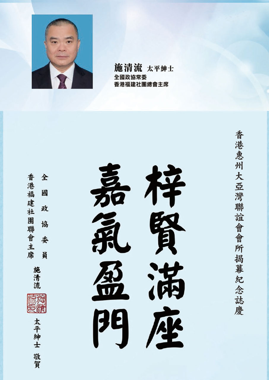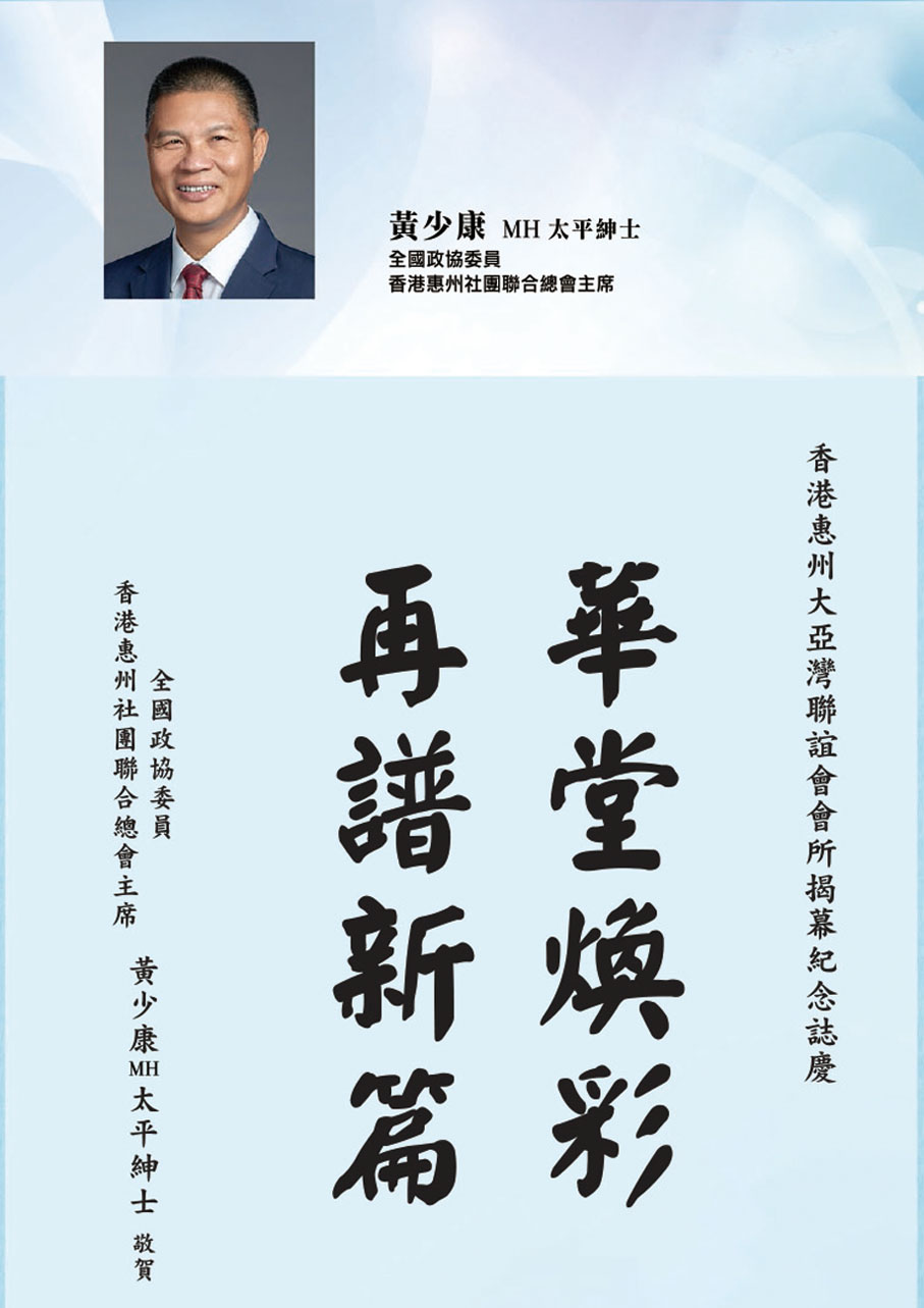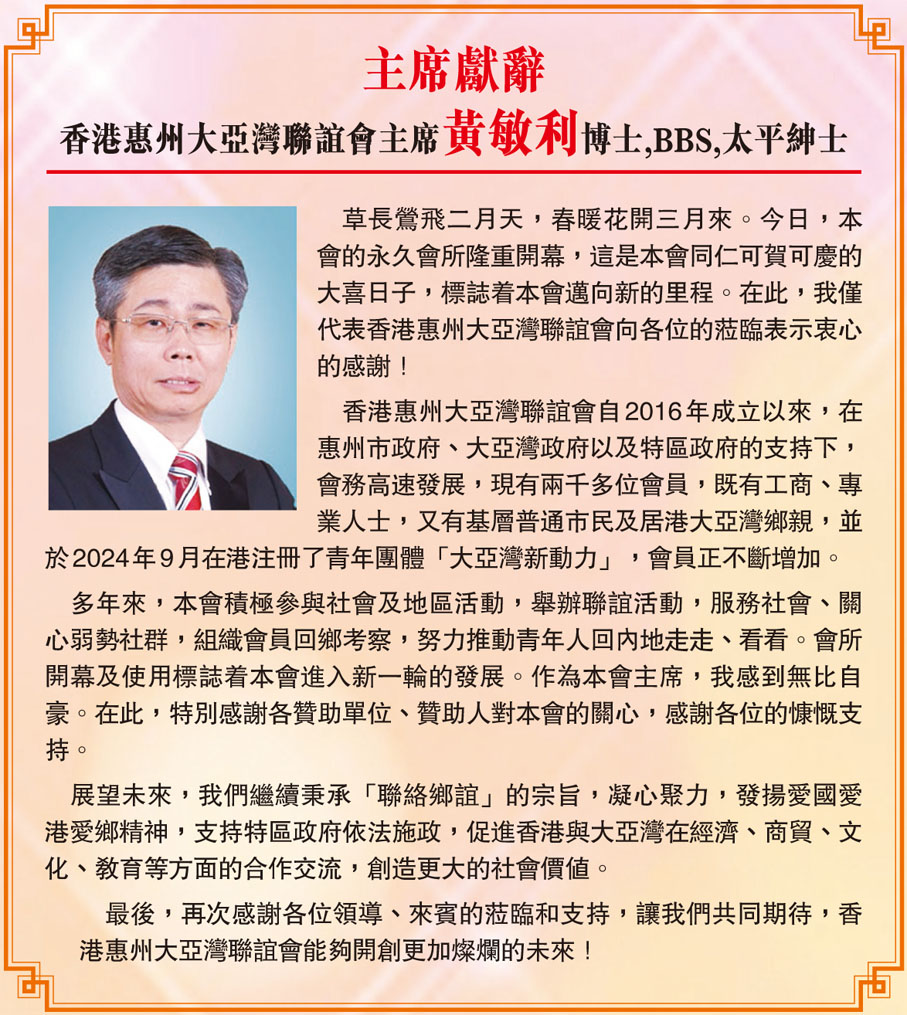 【主席獻辭】香港惠州大亞灣聯誼會主席黃敏利博士,BBS,太平紳士