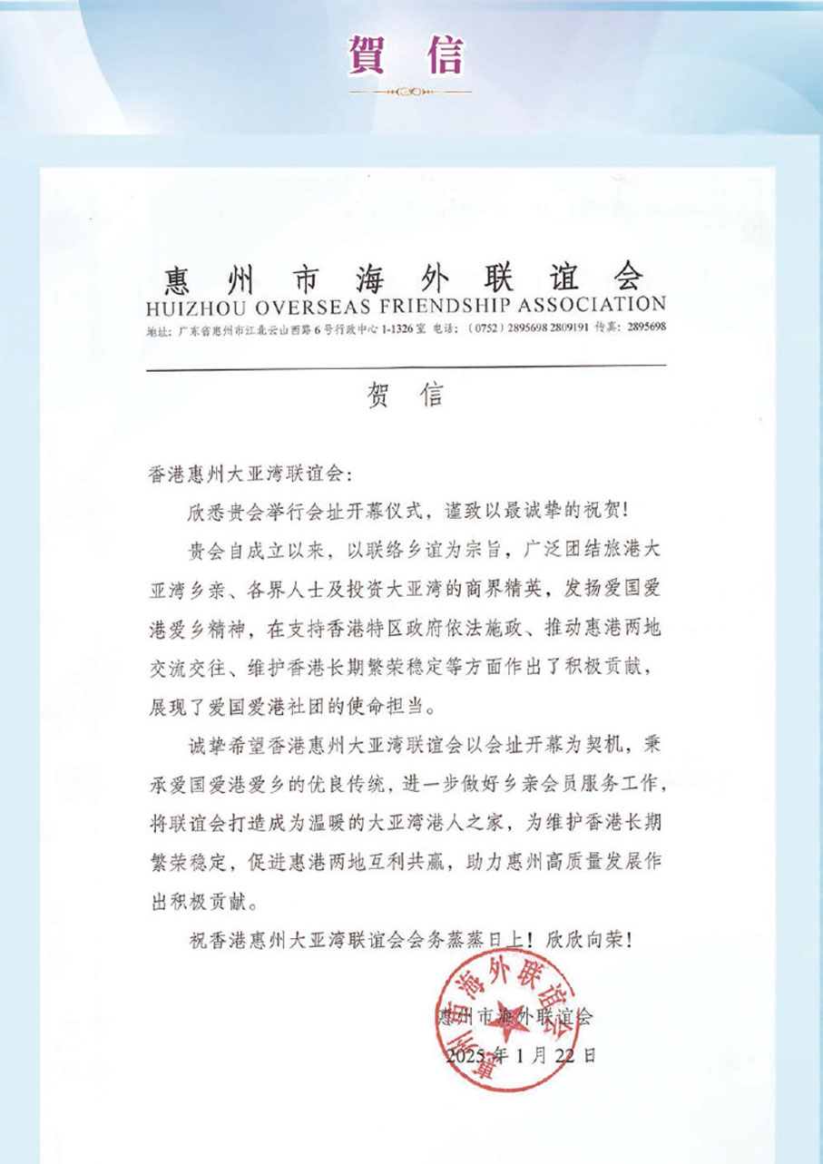 最後,再次感謝各位領導、來賓的蒞臨和支持,讓我們共同期待,香港惠州大亞灣聯誼會能夠開創更加燦爛的未來!
