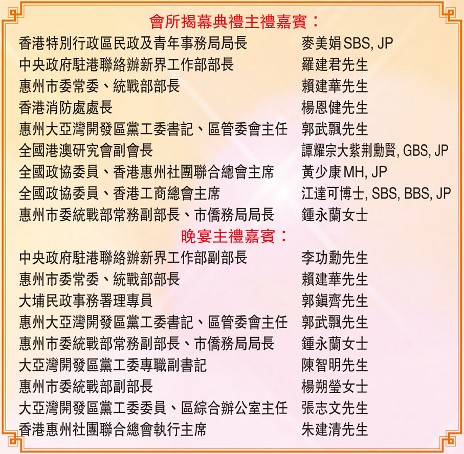 香港消防處處長楊恩健,全國港澳研究會副會長譚耀宗,全國政協委員、香港惠州社團聯合總會主席黃少康,全國政協委員、香港工商總會主席江達可,以及社會各界嘉賓共同見證這一重要里程碑。