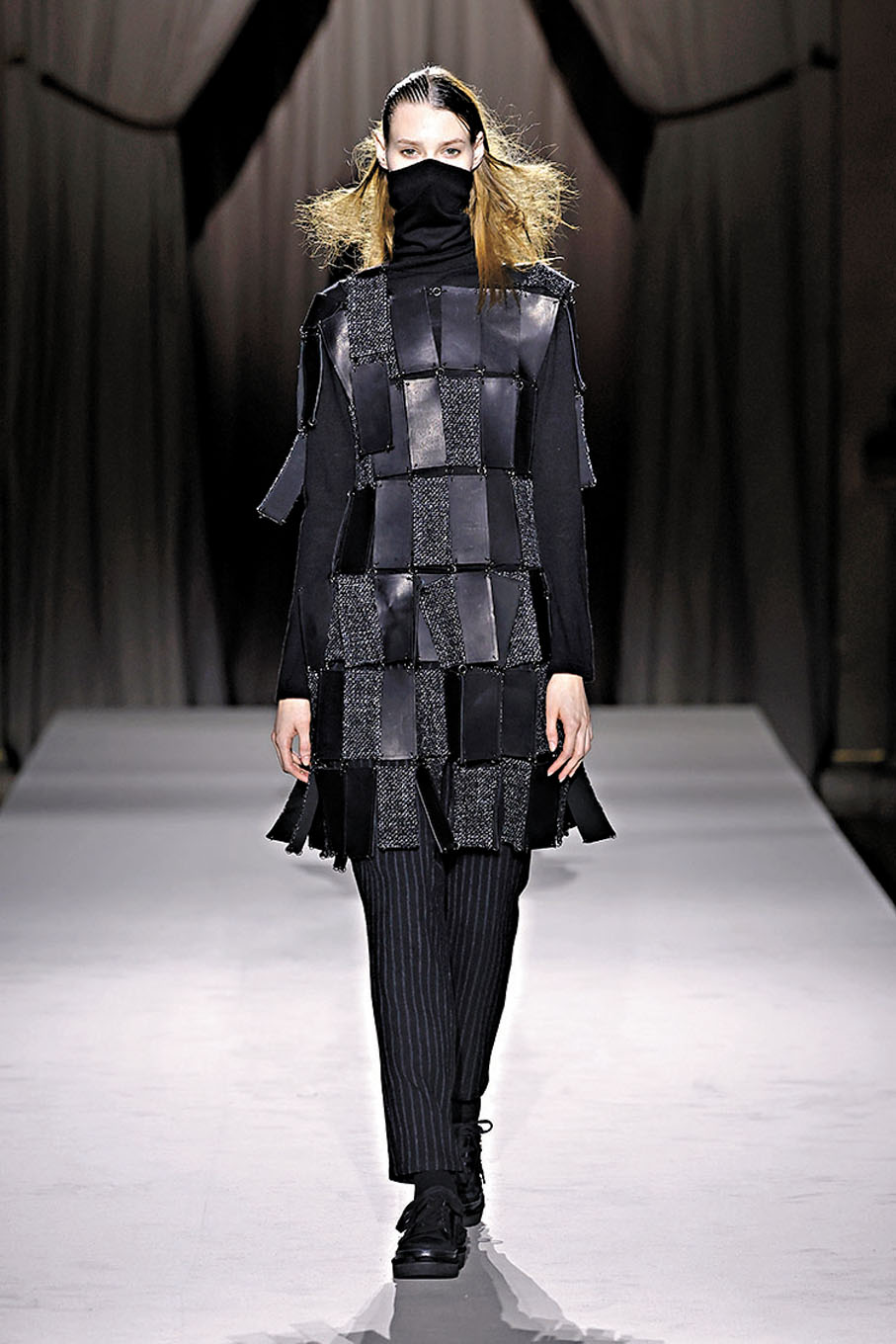 山本耀司(Yohji Yamamoto)的秋冬系列以「布料的可能性」為主題,展現他對解構與重組的深刻探索。這次系列的亮點包括將外套翻轉,露出內部高貴的紫色絎縫,展現服裝的流動性與內在美。山本耀司還運用複雜的裁剪技術,將布料裁成小片並重新拼接,創造出優雅且富詩意的設計。他的作品不僅是一種技術,更是一種思維模式,探索布料與人體之間的關係。此外,這次系列融入了他女兒山本里美(Limi Feu)的設計元素,為品牌注入新的創意與未來可能性。整體風格延續了山本耀司經典的黑色美學,並以神秘的紫色點綴,增添視覺吸引力。