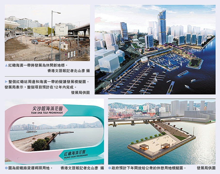香港特區行政長官李家超在去年發表的施政報告中,提出要活化紅磡站及周邊用地。特區政府發展局昨日公布紅磡站周邊和海濱一帶用地總共24公頃的初步發展建議,包括整合紅隧過海巴士轉乘站和露天公共運輸交匯處,並在海濱發展一座地標性約50層樓高的商住兩用大樓,以及在海濱一帶加入遊艇停泊設施和水上休閒設施等。發展局表示,有關項目將交由私人發展商建設,預計整體要花費約100多億至200億港元,整個項目預計在12年內完成。 ●香港文匯報記者 張弦