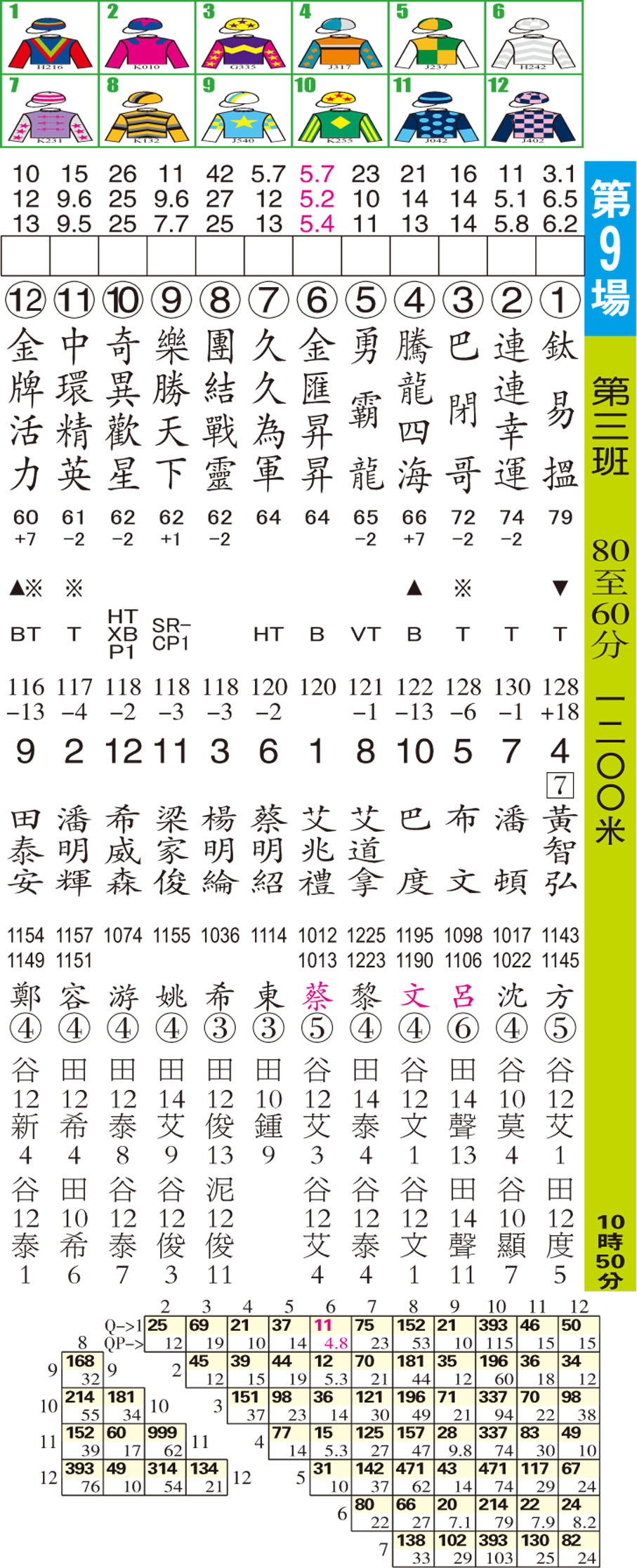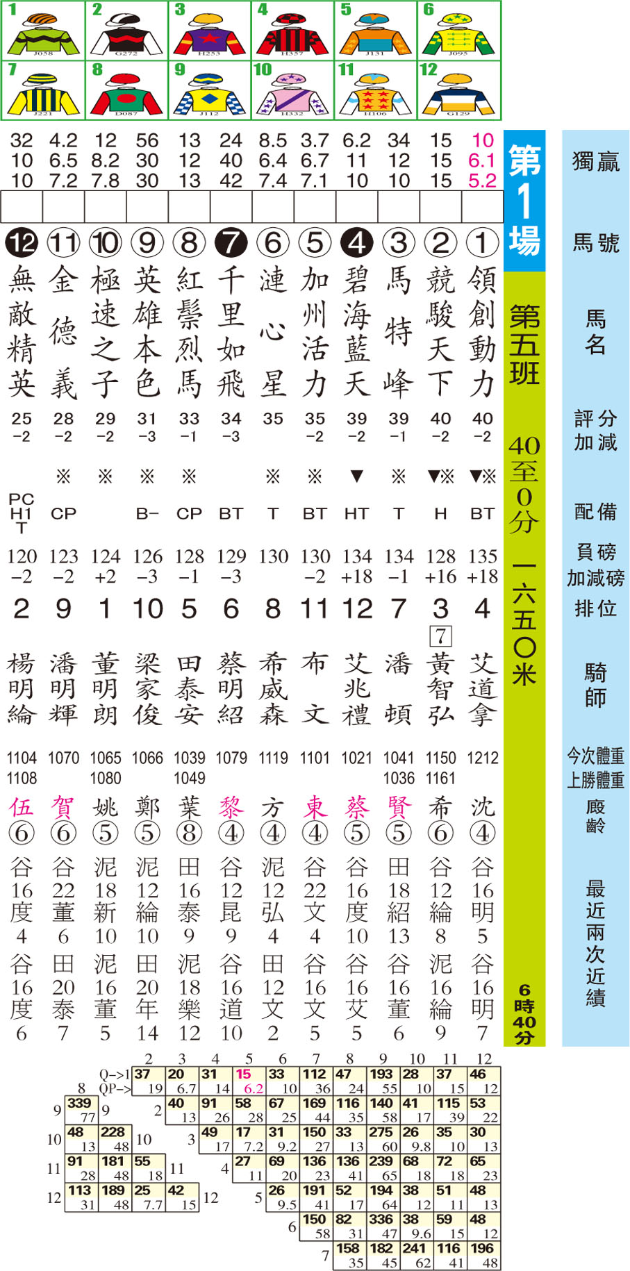 紅色馬名為補入馬匹。紅色騎師名為易配騎師。