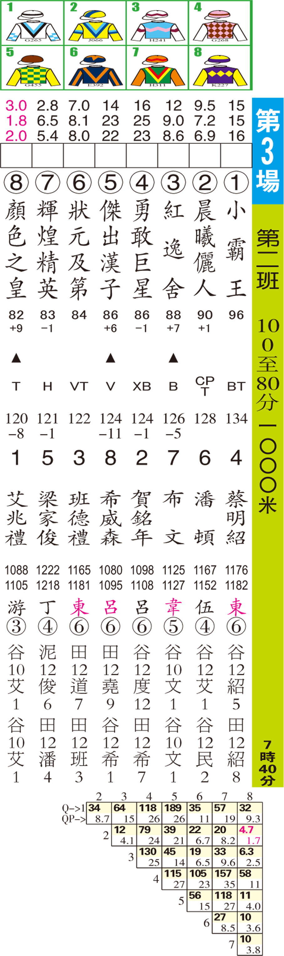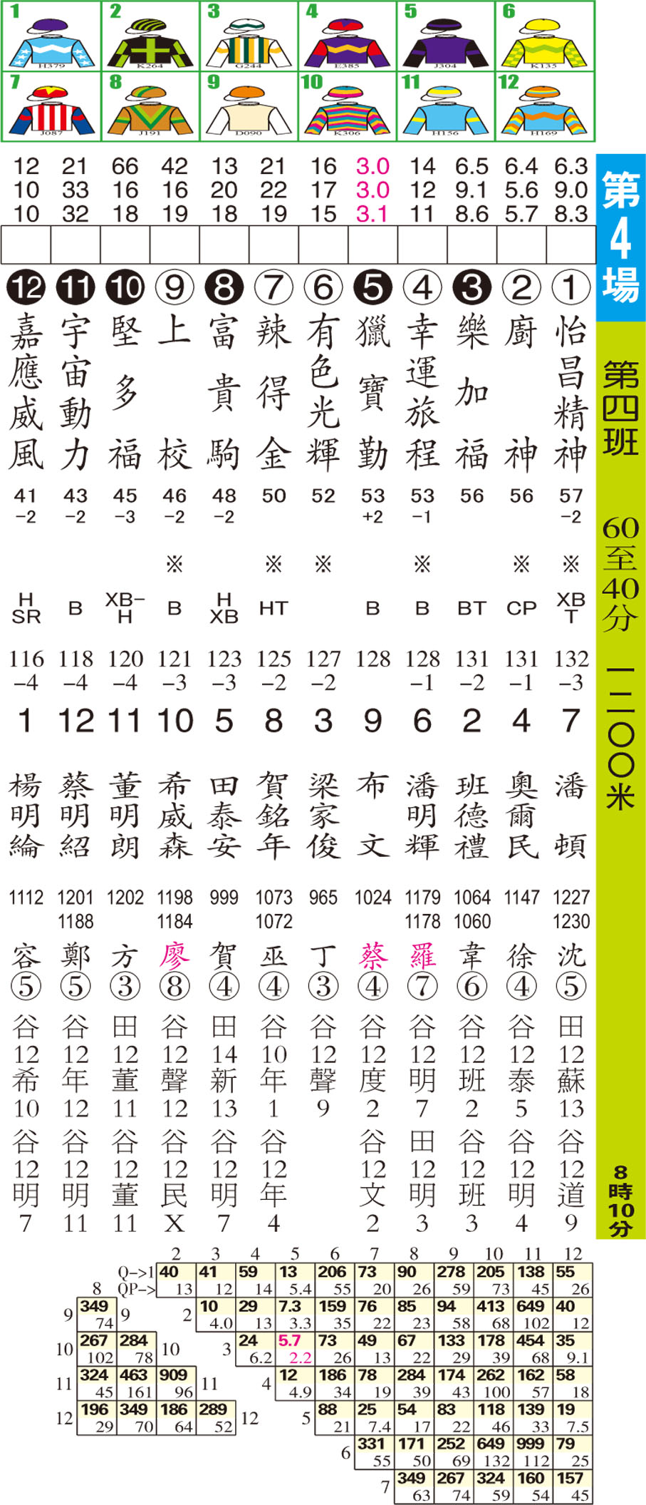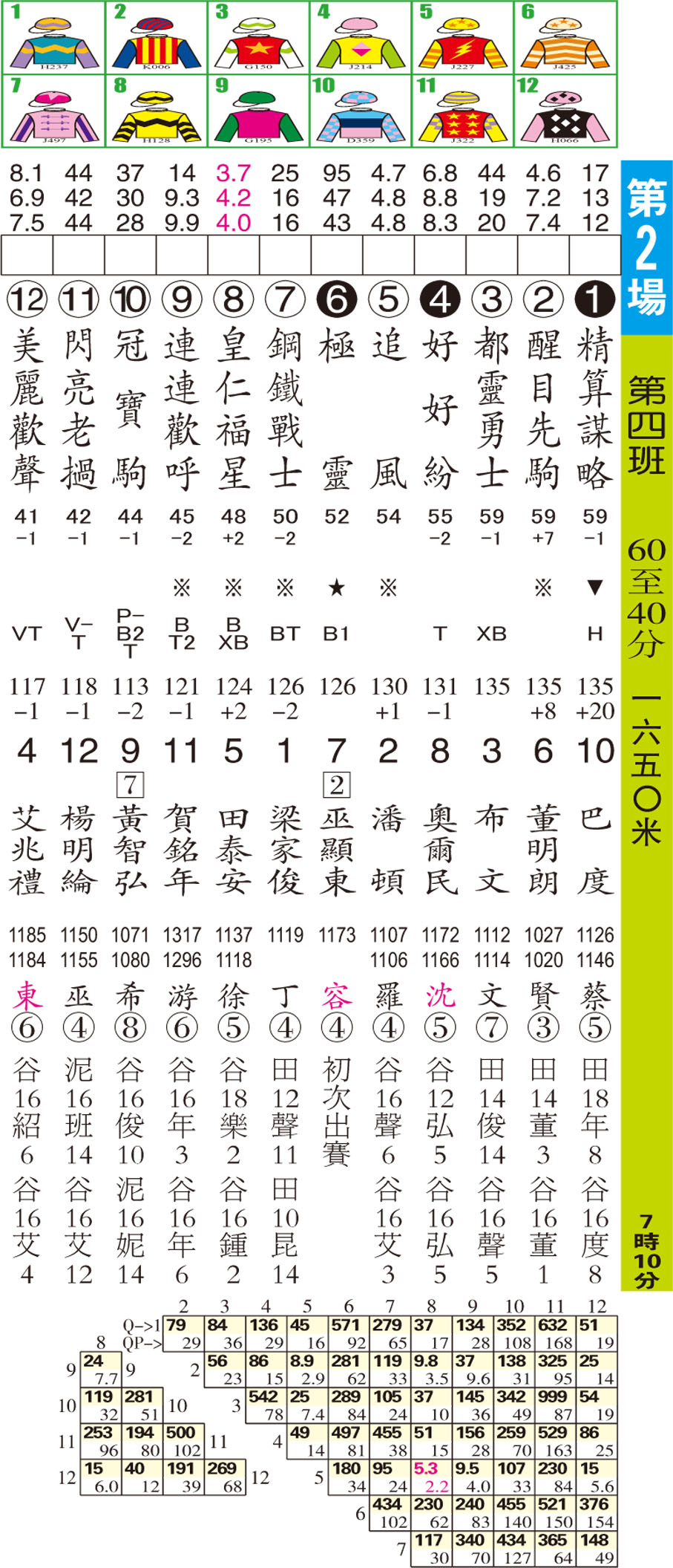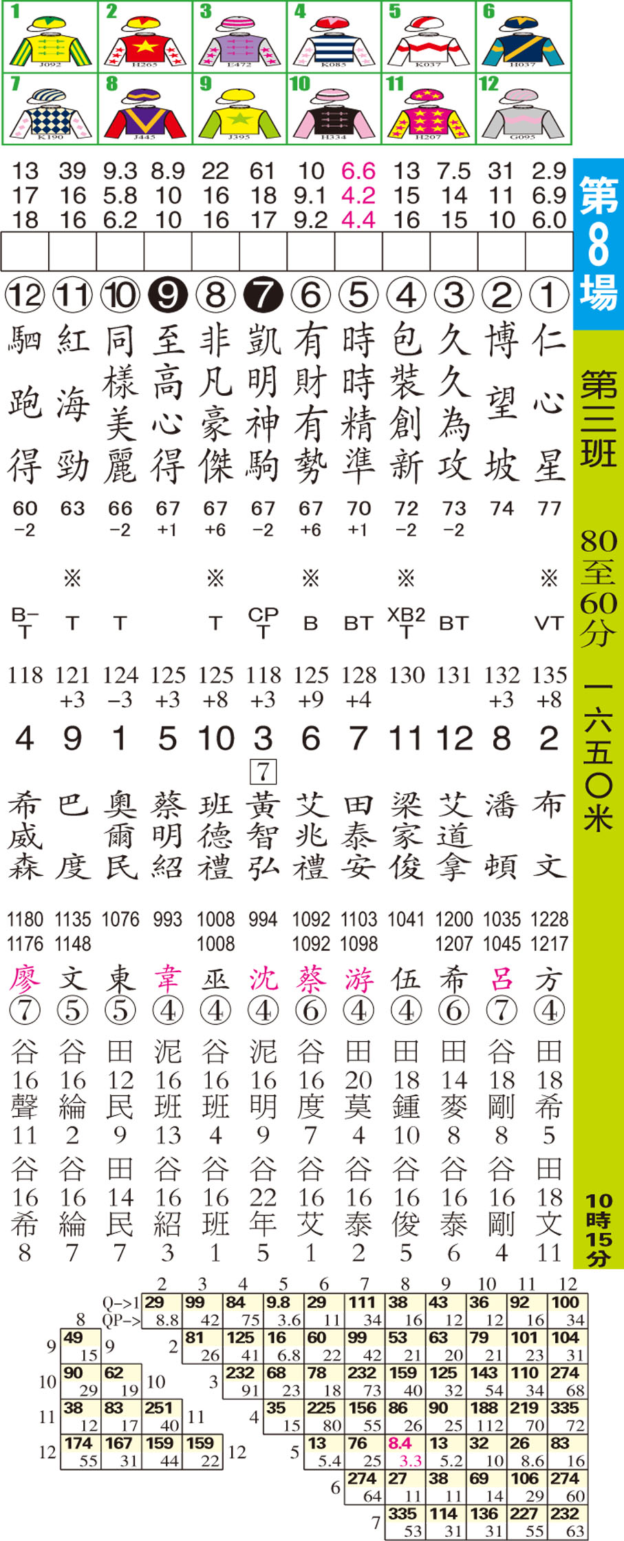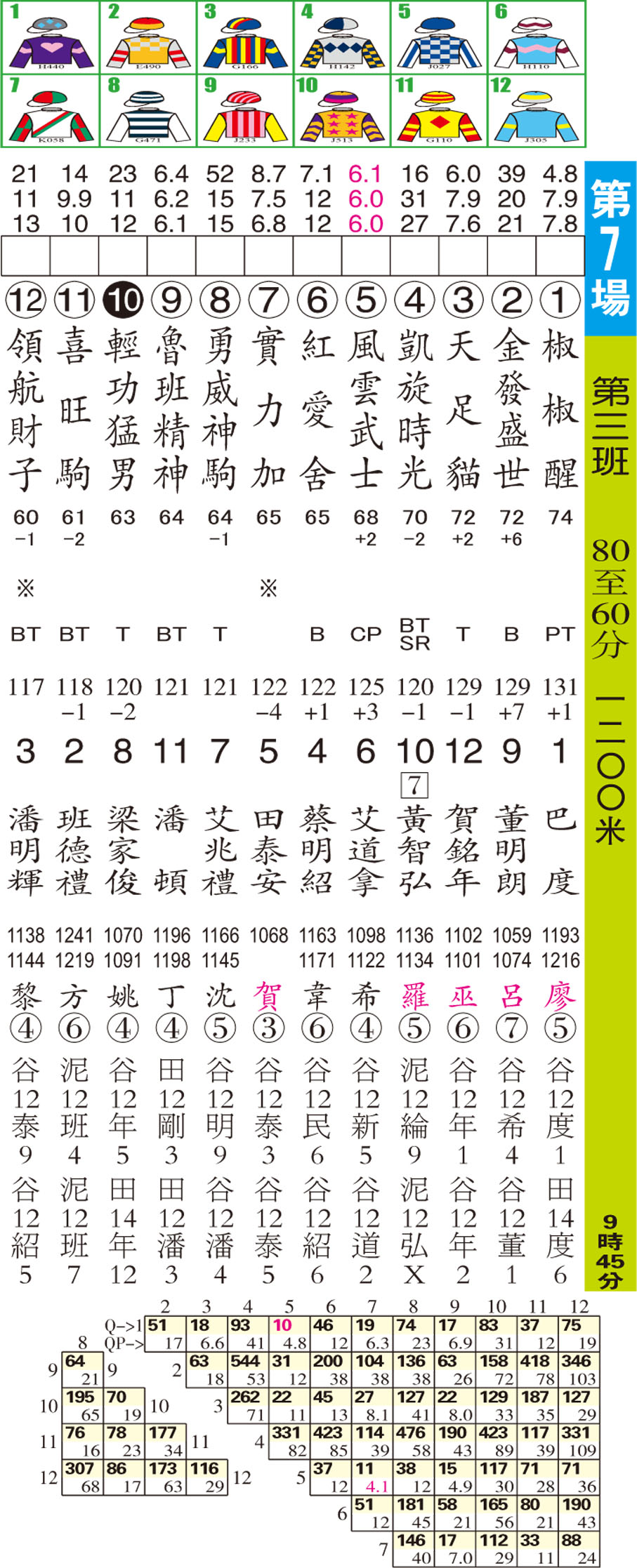 廄房紅色表示自上賽後在從化訓練出賽馬。