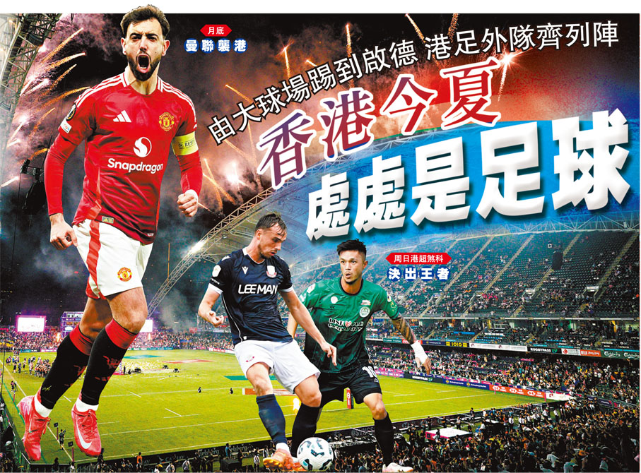 香港足壇今年夏天迎來連場盛事,先有本地波港超煞科日及足總盃決賽接連上演,港足及U20亦會在6月分途出擊,出戰亞洲盃外圍賽及國際青年足球慈善盃,加上曼聯、利物浦、阿仙奴、熱刺及AC米蘭相繼來港獻技,連場大戰「足」跡遍布大球場、旺角場及啟德三大香港足球「聖地」,無論是本地波「忠粉」或是歐洲波球迷,今夏在香港都可享受這場足球盛宴。●圖/文:香港文匯報記者 郭正謙