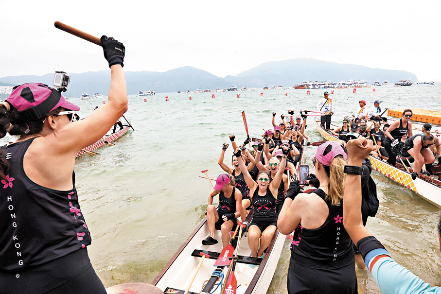 昨日是一年一度的端午節,在香港,除了在尖沙咀舉行的「永明香港國際龍舟邀請賽」、赤柱舉行的國際龍舟錦標賽,全港多區包括香港仔、沙田、大澳、大埔及西貢等地都舉行了龍舟競賽,雖然天色欠佳,幸未有天雨,吸引不少市民和遊客到場觀賽,部分地區同時舉辦嘉年華,務求讓市民和旅客都盡興而歸。不少巿民均認為賽事激烈,氣氛熱鬧。熱烈的氣氛,帶旺了周邊的生意,有商販建議特區政府多邀請內地各省市單位來港舉行大型活動,帶旺香港經濟。 ●香港文匯報記者 吳健怡、洪澤楷、嚴鍇華