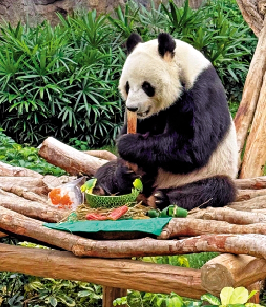 海洋公園的大熊貓家族和市民昨日一起慶祝端午節!為了迎接端午節,海洋公園的奶爸和奶媽,為大熊貓悉心製作龍舟布置。大熊貓寶寶「加加」和「得得」很喜歡奶爸奶媽為牠們製作的龍舟裝置,一直待在旁邊進食,不願離開。「安安」和「可可」則吃特製糉子,吃得津津有味。該糉子的「蛋黃」,是由黃色高纖餅乾和番薯製成,對大熊貓而言既美味又營養豐富。「盈盈」和「樂樂」嘆住冰糉,悠然自得。
