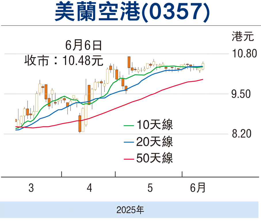 綜合來看,美蘭空港在 2025 年有望憑藉航空業務的持續回暖、非航業務的多點開花、成本控制的優化以及海南自貿港政策紅利的釋放,實現業績的扭虧為盈並邁入新的增長階段。筆者認為,可考慮於10.30元(港元,下同)買入,上望12元,跌穿9.80元止蝕。