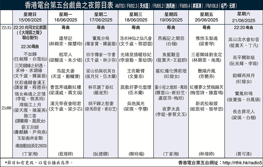 香港電台第五台戲曲之夜節目表